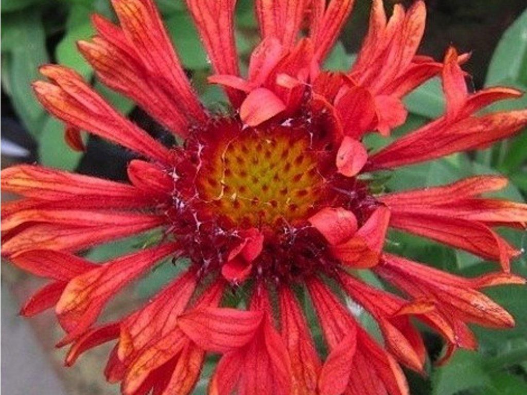 Kokardenblume ´Fanfare Blaze´ - horstbildende Staude mit lanzettlichen Blättern, heimisch in Nordamerika. Staude, die eine Höhe von 60 cm erreicht. Sie hat einen orangefarbenen Kranz einzelner Blüten mit gelblicher Färbung an den Spitzen, der ein dunkelrotes Zentrum umgibt. Dies erweckt den Eindruck einer ausgefransten Blüte. Die Blätter sind mattgrün. Blüht im Juli. Wir kultivieren in voller Sonne auf durchlässigem Boden. Verträgt keine Staunässe. Ideal für Vorgärten, Terrassen und gemischte Beete.