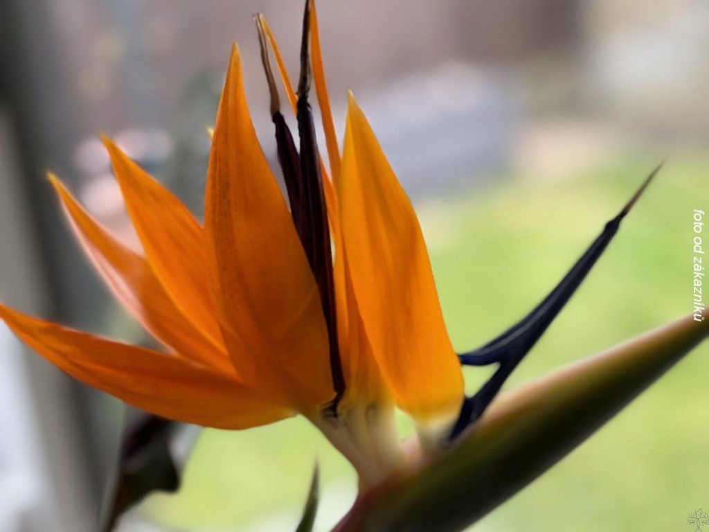 Königs-Strelitzie - unter unseren Bedingungen ist sie eher eine Zimmerpflanze, sie kann im Sommer draußen bleiben, muss aber im Winter ins Haus geholt werden, idealerweise in einen Wintergarten. Sie bildet immergrüne Horste mit steifen, breit-lanzettlichen Blättern an langen Blattstielen in einem graugrünen Farbton. Aus dem Büschel wachsen kräftige Blütenstängel, die in einem bootsförmigen Köcher enden, aus dem nach und nach auffällige Blüten in einer Kombination aus Orange und Tiefblau erblühen. In Tschechien blüht die Pflanze am häufigsten von Dezember bis zum Frühling; die einzelnen Blüten halten lange und sind auch als Schnittblumen geschätzt. Bis zur ersten Blütenbildung benötigt die Pflanze in der Regel mehrere Jahre, oft 5 bis 10 Jahre, abhängig von Größe und Lichtverhältnissen. Sie blüht leichter, wenn der Wurzelballen etwas beengt ist. Im Container erreicht sie üblicherweise eine Höhe von 1,2–1,8 m und eine Breite von 0,9–1,2 m. In einer Komposition kann sie als Solitärpflanze im Wintergarten, auf der Terrasse im Sommer und in modernen Interieurs verwendet werden, wo sie gut mit Gräsern in Töpfen, Sukkulenten und Stein- oder Holzmöbeln harmoniert. Der Pflanzensaft kann empfindliche Haut reizen und die Pflanze ist nicht zum Kauen für Haustiere geeignet. Die Blüten öffnen sich nach und nach, oft in mehreren Wellen, und eine Blüte kann bis zu 3–4 Wochen halten. Im Sommer wird die Pflanze von Mai bis September oft im Freien gelassen, wodurch die Blattstiele gestärkt und die Knospen für die nächste Saison besser ausgebildet werden.
