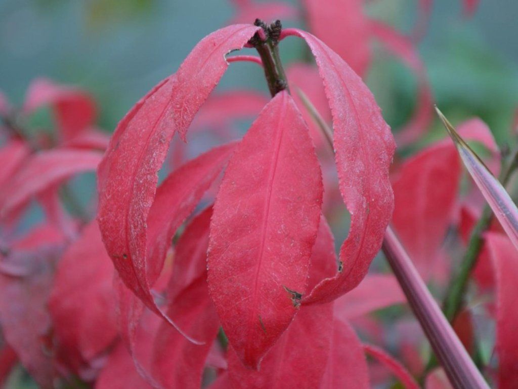 Euonymus alatus Little Moses 'Odom' - Zwergform, laubabwerfender Kultivar aus der Familie der Celastraceae, abgeleitet von einer Art aus Ostasien. Stammt aus der Auswahl des Kultivars 'Odom', verkauft unter dem Handelsnamen LITTLE MOSES, geschützt durch Sortenschutzrecht. Bildet einen dichten, aufrechten bis leicht abgeflachten Strauch mit einem fein verzweigten Gerüst und auffälligen Korkleisten an den Trieben, die auch nach dem Blattfall dekorativ bleiben. Die Blätter sind gegenständig, elliptisch bis lanzettlich, im Sommer mittel- bis dunkelgrün. Ab September färbt er sich zuverlässig scharlachrot bis karminrot, oft mit einem weinroten Unterton, sodass der Strauch wie eine bunte Laterne im Herbstgarten wirkt. Im Mai und Juni erscheinen kleine gelbgrüne Blüten. Ende Sommer und im Herbst reifen rote Samenkapseln, die sich öffnen und orangefarbene Samenmäntel zeigen; die Früchte sind für den Menschen ungenießbar und giftig. Dank seiner kompakten Größe eignet sich der Kultivar für kleinere Gärten, Vorgärten und Gruppenpflanzungen, ist aber auch für Kübel geeignet. Er harmoniert gut mit Ziergräsern, Viburnen, Spieren oder Nadelgehölzen, die die Herbstfarbe hervorheben.