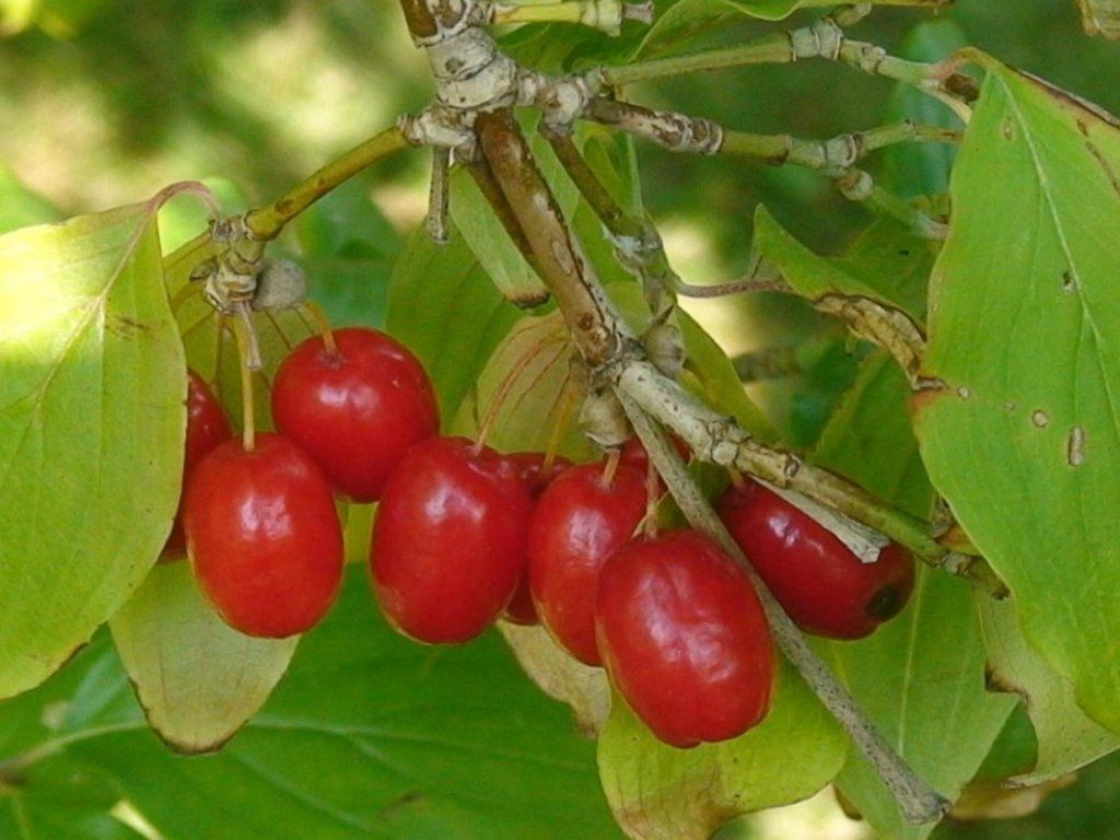 Hartriegel - ein Strauch bis kleiner Baum, ursprünglich aus Mittel- und Südeuropa und Kleinasien. In der Natur kommt er an sonnigen Hängen, in lichten Waldsteppen und in Gebüschen vor, oft auf kalkhaltigem Untergrund. Unter unseren Bedingungen gedeiht er besonders in wärmeren Gebieten und gehört zu den Gehölzen, die die Saison sehr früh beginnen. Noch vor dem Laubaustrieb blüht er im Februar bis März mit kleinen gelben Blüten in kleinen Dolden, die eine wichtige Quelle für Pollen und Nektar für frühe Bestäuber sind. Die Blätter sind elliptisch, im Sommer tiefgrün, im Herbst können sie sich zu gelben bis rötlichen Tönen verfärben. Er erreicht normalerweise eine Größe von 2,5–4 m × 2,5–4 m und bildet mit dem Alter eine dichte, breit abgerundete Krone. Die Frucht ist eine glänzende rote Steinfrucht, oft 12–15 mm lang, die meist im August bis September reift. Der Geschmack ändert sich je nach Reife deutlich: festere Früchte sind adstringierender, nach voller Reife werden sie weicher, süßer und setzen fruchtige Säure frei. Für die Ernte werden oft Früchte verwendet, die sich leicht lösen oder von selbst abfallen. In der Küche werden sie für Marmeladen, Sirupe, Kompotte, Pasteten, Fruchtsaucen und hausgemachte Getränke verwendet. Die Früchte enthalten unter anderem Vitamin C, Polyphenole und organische Säuren, weshalb sie seit langem in der Hausverarbeitung geschätzt werden. Für eine regelmäßige Fruchtbildung sind mindestens zwei genetisch unterschiedliche Pflanzen in Bestäubungsreichweite geeignet, gegebenenfalls in Kombination mit Sorten der essbaren Kornelkirsche. Er wird auch für seine Biodiversität geschätzt, da die Blüten Insekten und die Früchte Vögel fördern.