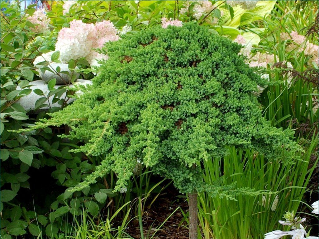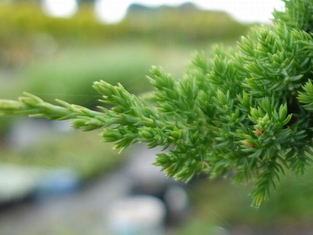 Kriechwacholder 'Bonin Isles' - gehört zu den niedrigen, kriechenden Nadelgehölzen, die von den japanischen Ogasawara-Inseln stammen, früher bekannt als Bonin. In seiner natürlichen Umgebung wächst die Art Juniperus procumbens an sonnigen, felsigen Hängen und Küstenfelsen, wo sie dichte, wind- und trockenresistente Bestände bildet. Der Kultivar ‘Bonin Isles’ wurde wegen seines gleichmäßigen, kompakten Wachstums und der feinen Nadeltextur selektiert. Er bildet einen niedrigen, kissenförmigen Strauch mit ausgeprägt liegenden Ästen, die bei Bodenkontakt Wurzeln schlagen und mit der Zeit einen dichten, immergrünen Teppich bilden können. Mit zehn Jahren erreicht er eine Höhe von etwa 0,2 m und eine Breite von etwa 1,5 m, im vollen Erwachsenenalter normalerweise 0,1-0,3 m × 1–2 m. Die Seitenzweige heben sich leicht an und bilden eine fein gewellte Oberfläche. Das Nadelwerk ist kurz, stachelig, 6-8 mm lang, in dichten Büscheln von graugrüner bis blaugrüner Farbe. Die Pflanze bleibt dank ihres immergrünen Laubes das ganze Jahr über dekorativ. Die kleinen männlichen und weiblichen Zapfen sind unauffällig, der Hauptzierwert liegt in der Dichte, Farbe und Struktur des Nadelwerks. In der Gartengestaltung wird er als Bodendecker an Hängen, trockenen Böschungen, Heidegärten, Felsgärten und an den Rändern von Beeten eingesetzt, wo er Unkraut unterdrückt und den Boden befestigt. Dank seines natürlichen, kriechenden Wachstums wird er auch häufig für die Bonsai-Gestaltung und für Gefäße verwendet, aus denen er über die Ränder hängen kann.