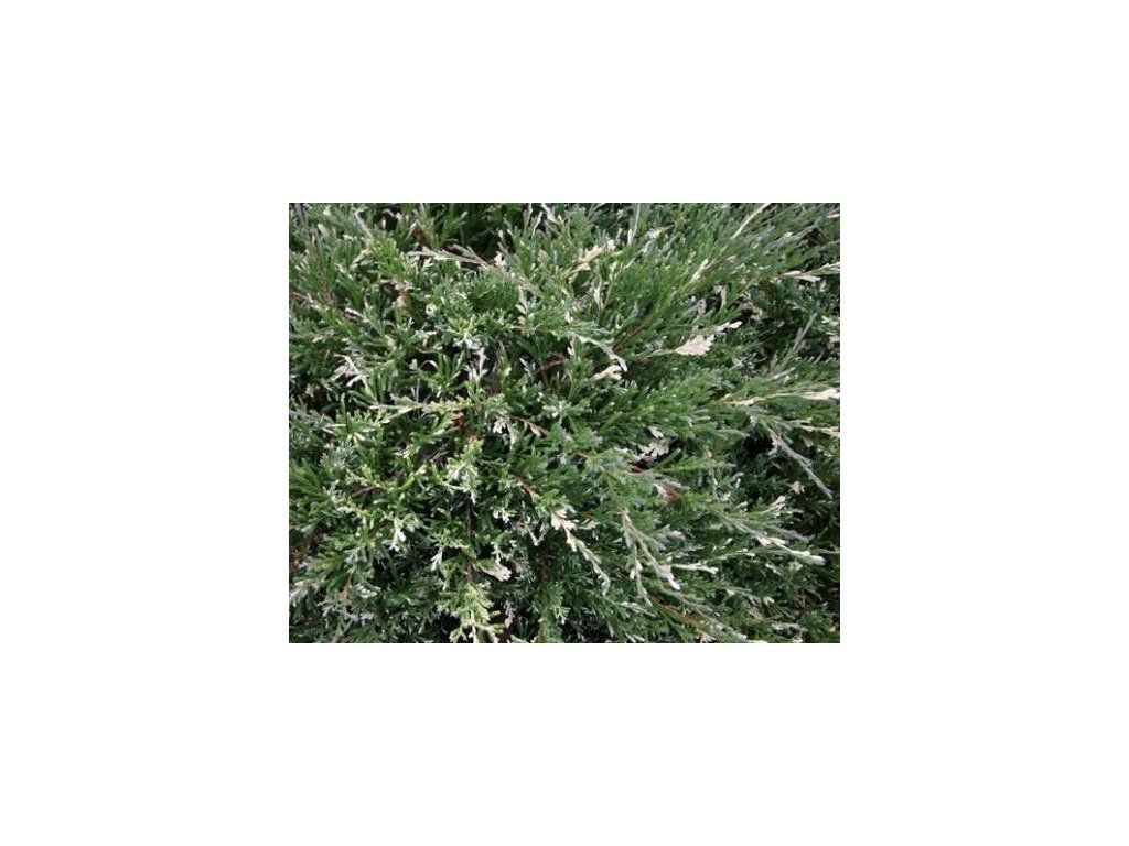 Kriechwacholder 'Andorra Variegata' - kriechender Wacholder, der eine Höhe von 30 - 40 cm und eine Breite von 1 - 1,5 m erreicht. Er hat eine außergewöhnliche Färbung, bei der die Grundfarbe der Nadeln mittelgrün bis birnengrün ist, aber bis zur Hälfte der Zweige cremefarbene Panaschierung aufweisen kann. Dieser Nadelbaum verdient Ihre Aufmerksamkeit. Die Nadeln sind weich, stechen nicht und fühlen sich eher „kuschelig“ an. Das Wachstum ist dicht, breit kissenförmig mit leicht aufsteigenden Zweigen.