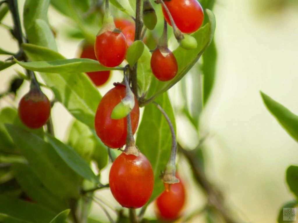 Pflege: Goji-Beeren gedeihen am besten in voller Sonne, wo sie mindestens sechs Stunden direktes Licht pro Tag erhalten, obwohl sie auch im Halbschatten wachsen, aber weniger Früchte tragen. Sie bevorzugt durchlässigen, leichten bis mittelschweren Boden und verträgt auf keinen Fall lang anhaltende Staunässe. Am besten gedeiht die Goji-Beere in einem Boden mit einem pH-Wert zwischen 6,5 und 8,0, also neutral bis leicht alkalisch. Auf leicht saurem Boden wächst sie ebenfalls, aber in zu saurem Boden (unter pH 6) kann sie kümmern, schlechter tragen und häufiger unter Nährstoffmangel leiden. Eine mäßige Düngung ist ausreichend – im Frühjahr Kompost oder organischen Dünger mit höherem Kaliumgehalt. Es ist ratsam, die Bodenoberfläche unter einer Mulchschicht aus Stroh, Holzspänen oder Kompostrinde zu halten, um die Feuchtigkeit besser zu speichern. Sie ist sehr frosthart und verträgt normalerweise Temperaturen bis zu –25 °C, wobei junge Pflanzen im ersten Winter geschützt werden sollten. Goji-Beeren sind ebenfalls resistent gegen Krankheiten und Schädlinge, obwohl manchmal Mehltau, Blattläuse oder Spinnmilben auftreten können, besonders bei zu dichtem Bewuchs oder Feuchtigkeit. Nach der Pflanzung benötigt sie regelmäßige Bewässerung, ist aber später relativ trockenheitstolerant; für eine reiche Ernte ist es ratsam, während trockener Perioden einmal pro Woche zu gießen. Regelmäßiger Schnitt im Frühjahr hält den Strauch gesund und luftig – trockene, beschädigte und übermäßig dichte Äste werden entfernt und zu lange Triebe gekürzt, da die Früchte hauptsächlich an ein- und zweijährigem Holz gebildet werden. Alle drei bis fünf Jahre wird eine Verjüngung empfohlen, die die Pflanze vital und ertragreich hält.
