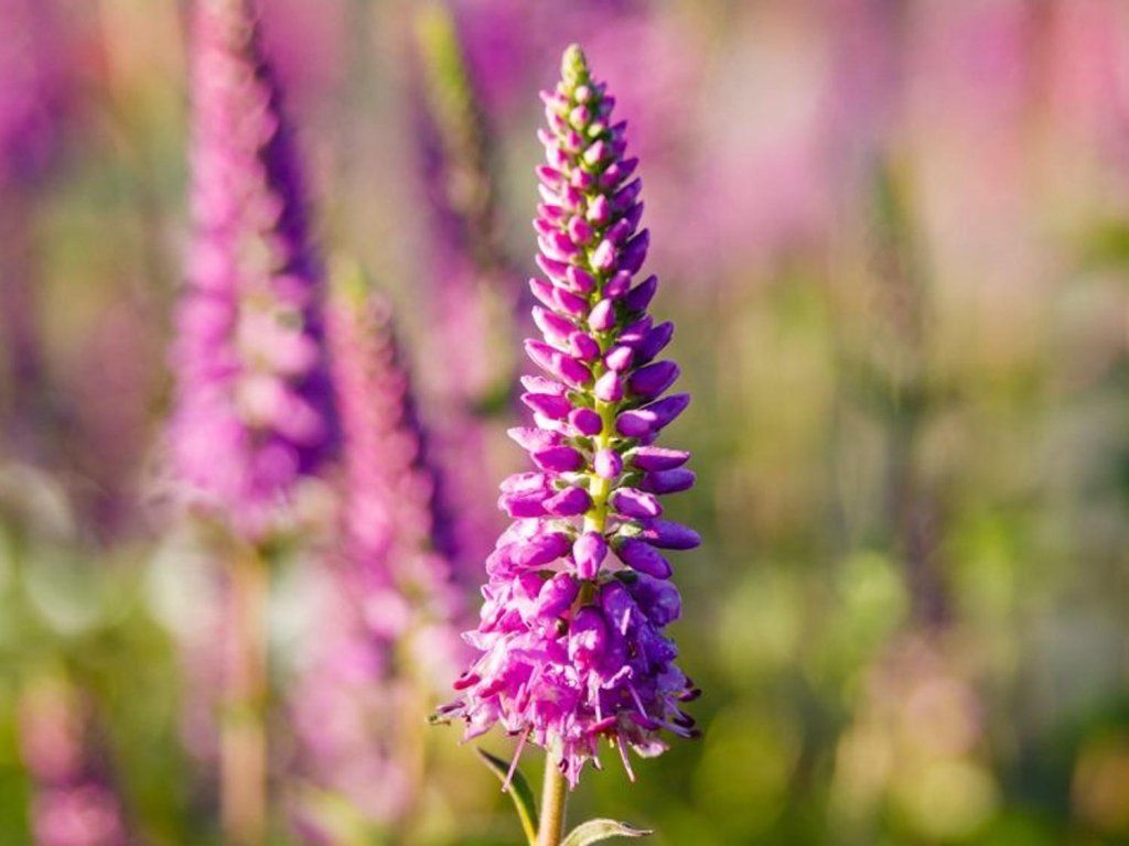 Veronica longifolia 'First Match' - eine Sorte dieser ausdauernden Staude, die für ihre schönen Blüten und ihre lange Blütezeit geschätzt wird. Die Pflanze erreicht eine Höhe von etwa 60 bis 90 Zentimetern, was sie zu einer mittelgroßen Pflanze macht, die für verschiedene Gartengestaltungen geeignet ist. Sie ist bekannt für ihre schönen Blüten mit intensiver violetter Farbe. Die Blüten sind in Trauben an den Stielenden angeordnet und ziehen Schmetterlinge und andere Bestäuber an. Die Blüten erscheinen im Sommer bis in den frühen Herbst hinein, was eine lange Blütezeit gewährleistet. Die Blätter sind schmal, lang und dunkelgrün. Sie sind wechselständig entlang der Stiele angeordnet und bilden einen schönen Kontrast zu den prächtigen Blüten. Ihr aufrechter Wuchs und ihr reiches Blütenspektrum tragen zur ästhetischen Gestaltung von Gärten bei. Sie kann in Steingärten und in Töpfen kultiviert werden.