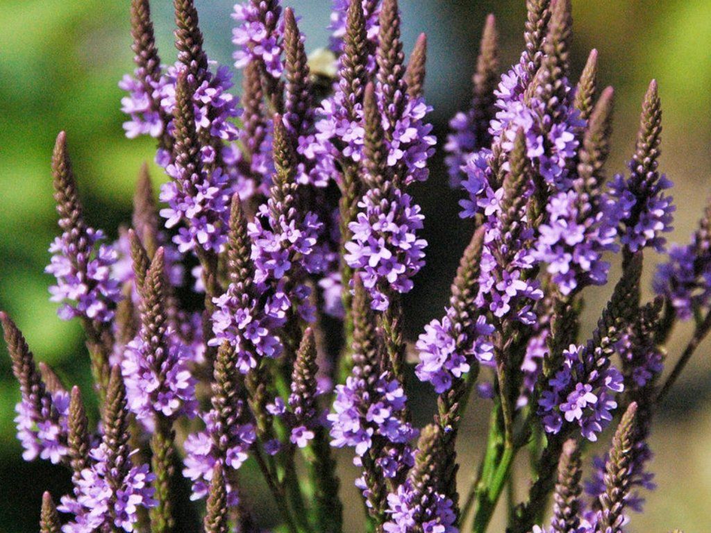 Verbena hastata - eine ausdauernde Art aus der Familie der Eisenkrautgewächse, die aus feuchteren Regionen Nordamerikas stammt. In der Natur besiedelt sie offene Wiesen, Flussauen, Ränder von Feuchtgebieten und feuchtere Präriestandorte, wo sie in tieferen, nährstoffreichen Böden mit ausreichend Licht wächst. Dieser ökologische Ursprung spiegelt sich deutlich in ihren Kulturanforderungen und ihrem Gesamterscheinungsbild im Garten wider. Die Pflanze bildet ein horstbildendes, relativ tiefes Wurzelsystem aus, aus dem jedes Jahr kräftige, aufrechte Stängel wachsen. Diese sind schlank, aber stabil, nur minimal anfällig für das Umfallen und verleihen der Pflanze einen leichten, luftigen Charakter. Die Blätter sind lanzettlich bis eng eiförmig, gegenständig, mit einem fein gesägten Rand und einer mittel- bis dunkelgrünen Färbung. Das Blattwerk bildet eine ruhige, unauffällige Kulisse, die es den Blütenständen ermöglicht, voll zur Geltung zu kommen. Von Juli bis September erscheinen an den Enden der Haupt- und Seitentriebe schmale, oft verzweigte, ährenförmige Blütenstände von 10-20 cm Länge. Sie bestehen aus einer großen Anzahl kleiner Blüten in violett-rosa Tönen, deren Farbe sich während der Blütezeit leicht ändern kann. Die Blütenstände wirken leicht und beweglich, besonders bei Pflanzungen in größeren Gruppen oder in Kombination mit Gräsern. Die Blüten sind eine reiche Quelle für Nektar und Pollen und machen Verbena hastata zu einer ausgesprochen bienenfreundlichen Art, die auch für Schmetterlinge und andere Bestäuber attraktiv ist. Im ausgewachsenen Zustand erreicht sie eine Höhe von ca. 80-120 cm und eine Breite von 40-60 cm, wobei sie einen aufrechten, schlanken Habitus beibehält. Dank ihres natürlichen Aussehens und ihrer zarten Farbgebung kommt sie vor allem in naturnahen und landschaftlich gestalteten Pflanzungen, auf Wiesen- und Präriebetten sowie in modernen Staudenkompositionen mit Schwerpunkt auf Struktur und saisonaler Veränderung zum Einsatz. Sie lässt sich sehr gut mit Ziergräsern, Sonnenhüten, Christophskräutern, Rudbeckien oder hohen Schwertlilien kombinieren.