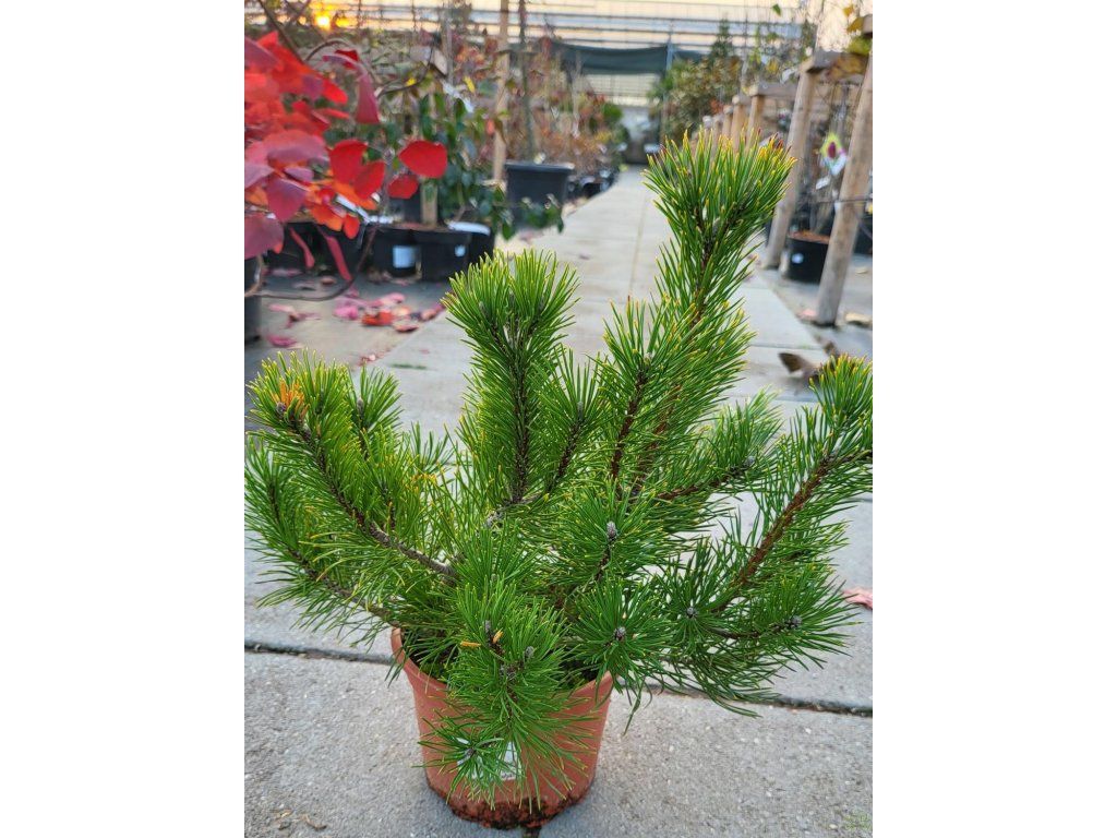 Bergkiefer - Pinus mugo ist ein Nadelgehölz von eher spärlichem, buschigem Wuchs, ohne Pfahlwurzel. Sie wächst auf eine Höhe von 1–2 m und kommt hauptsächlich in Bergregionen oberhalb der Waldgrenze oder in tieferen Lagen auf Mooren oder Hochmooren vor. Oft hat sie bizarre Formen, die durch ständigen Wind von einer Seite entstehen. Unter Gartenbedingungen wächst sie dicht und regelmäßig und gehört zu den widerstandsfähigsten Gartenkiefern. In der Natur wächst sie oft auf felsigen, sandigen Standorten, obwohl sie für ein gesundes Wachstum viel Wasser benötigt. Dazu dienen ihr lange Wurzeln, die Wasser auch unter ungünstigsten Bedingungen finden. Abgesehen von stark kalkhaltigem Boden verträgt sie jeden durchlässigen Boden. Als vollständig winterharter und sehr widerstandsfähiger kleine Kiefer findet sie viele Anwendungen in der Gartengestaltung und der städtischen Begrünung.