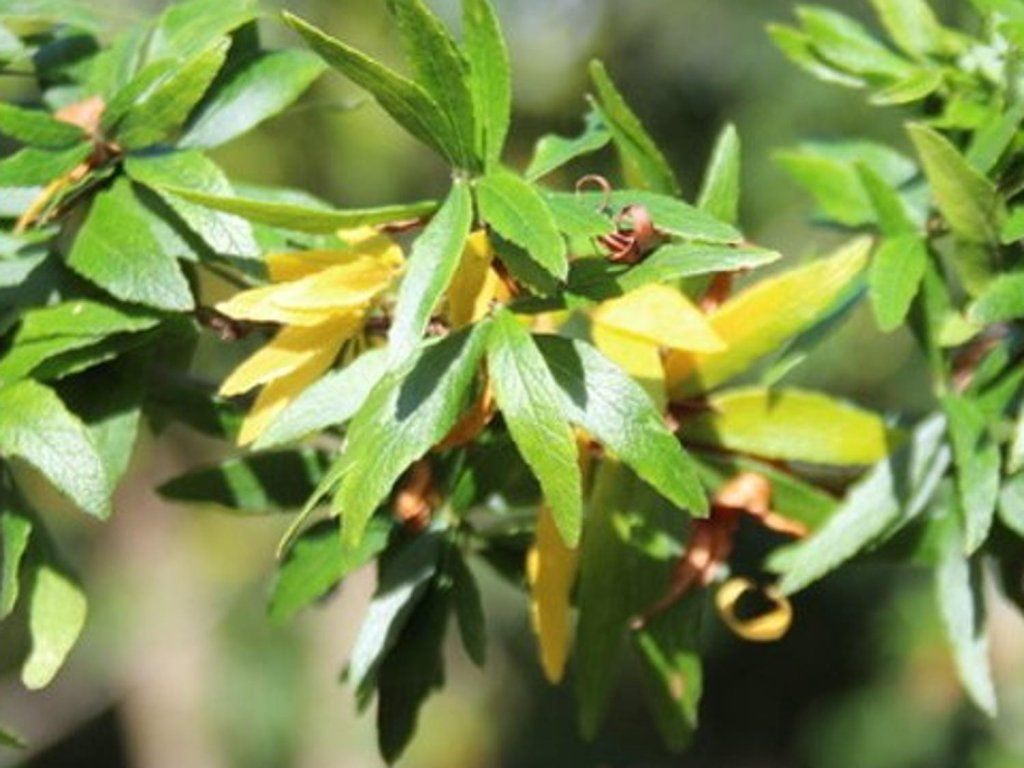 Gleditsia triacanthos 'Goofy' - ein interessanter Kultivar des Gewöhnlichen Lederhülsenbaums, der sich durch seinen unkonventionellen, ausgeprägten Habitus und eine geringere Wuchshöhe von normalerweise 3 - 6 m auszeichnet. Dieser Baum hat normalerweise eine unregelmäßige Kronenform, die asymmetrisch sein kann oder im Vergleich zu anderen Lederhülsenbaum-Kultivaren ungewöhnliche Formen bildet. 'Goofy' hat, ähnlich wie andere Sorten der Dreispitzigen Gleditschie, laubabwerfende Blätter, die gefiedert sind und eine feine Textur aufweisen. Die Blätter sind gefiedert wie bei anderen Arten der Gattung Gleditsia, aber dank des gedrehten Blattstiels scheinen sie in Büscheln angeordnet zu sein. Dieser Effekt wird durch die Tatsache verstärkt, dass die Blätter in Gruppen entlang der Zweige wachsen, was dem Baum ein ganz einzigartiges Aussehen verleiht und ihn deshalb 'Goofy' nennt. Die Blätter sind tiefgrün und können im Herbst Gold-, Orange- oder Rottöne annehmen, was der Landschaft eine bunte und dramatische Herbstfärbung verleiht.