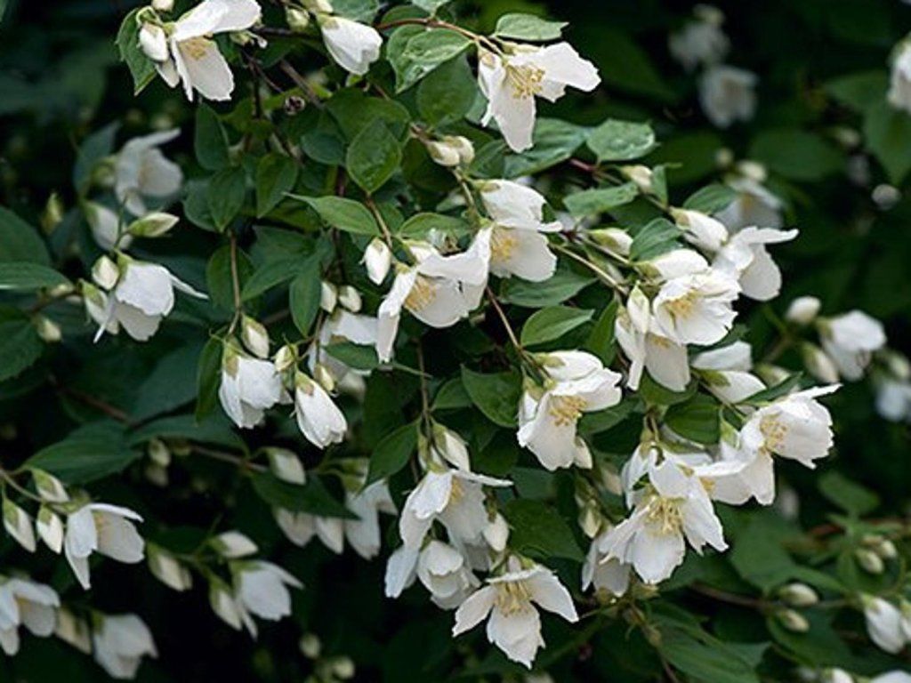 Gartenjasmin 'Lemoine' – eine historische Gartenhybride des Winterjasmins, die in Frankreich von dem Züchter Victor Lemoine durch die Kombination der Arten coronarius und microphyllus entstanden ist, wodurch sie ein kompakteres Wachstum und eine reiche Blüte mit intensivem Duft erhielt. Dieser laubabwerfende Strauch erreicht im ausgewachsenen Zustand eine Höhe von etwa 1–2 Metern und eine ähnliche Breite mit einem dicht verzweigten, aufrechten bis leicht bogenförmigen Habitus, der mittlere bis größere Gartenflächen sowie Beetränder füllt. Die Blätter sind eiförmig bis elliptisch, hell- bis mittelgrün mit fein gezähnten Rändern. Das wichtigste Zierelement sind reinweiße, einfache Blüten mit einem Durchmesser von etwa 2,5–3,5 cm mit einem ausgeprägten süßen Duft nach Orangenblüten, die von Juni bis Juli in reichen Trauben erscheinen und Bestäuber anlocken. Er ist frostbeständig bis ca. –22 °C, in geschützten Lagen auch tiefer. Im Garten findet er Anwendung als duftender Solitär, als mittlere Pflanze in Strauchpflanzungen, Teil einer blühenden Hecke oder in Kombination mit anderen sommerblühenden Gehölzen.