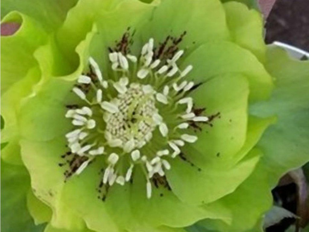Christrose 'Double Ellen Green' - eine weitere aus einer Reihe schöner Kultivare, die eine Höhe von 30 - 40 cm erreicht. Die Blütenfarbe ist wirklich einzigartig, die Blüten sind halbgefüllt, die Blütenblätter haben eine pastellgrüne Farbe, und weiße Staubgefäße ragen aus der Mitte heraus. Wenn die Blüten reifen, hält sich die intensive Färbung an den Rändern der Blütenblätter, während die Oberfläche eher hellgrün gefärbt ist. Die Stängel sind aufrecht und fest. Die Blätter sind dunkelgrün, ledrig, handförmig und immergrün. Die Christrose blüht je nach Wetterentwicklung, meist von Februar bis April. Bei späterer Frühlingspflanzung ins Beet kann sie auch noch im Juli blühen. Sie kommt in Kombination mit Kuhschellen und Lungenkraut gut zur Geltung. Sie wird in Gefäßen sehr dekorativ wirken.