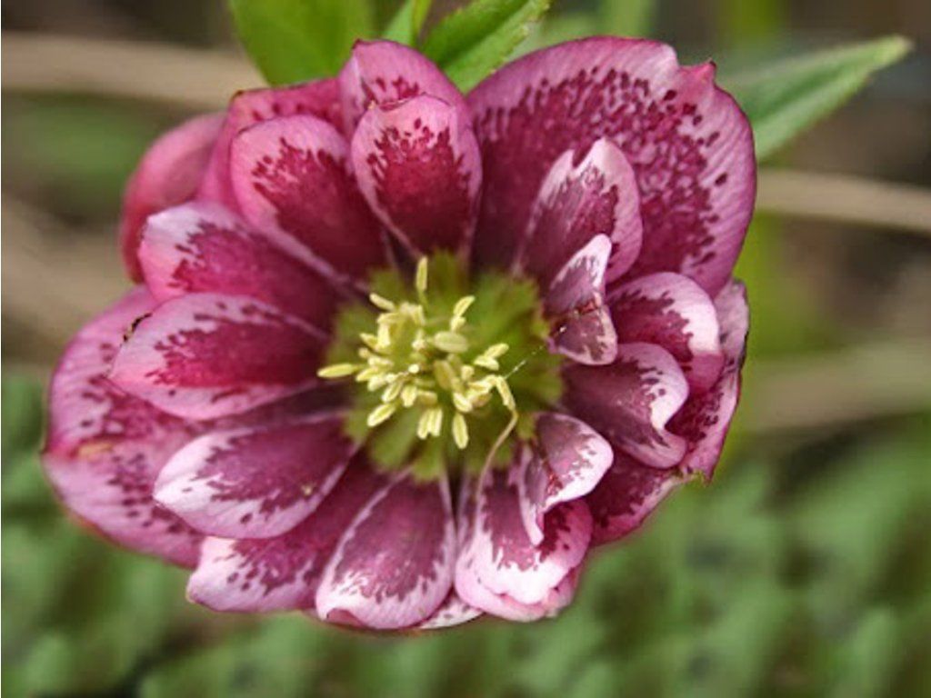 Christrose 'Winter Emotions Triple Pink' - Teil der Serie Winter Emotions, die von europäischen Baumschulen als Auswahl an Christrosen mit auffälligen Blüten für den späten Winter und das frühe Frühjahr angeboten wird. Bildet einen immergrünen, kompakten Horst von normalerweise 30–40 cm Höhe und etwa 50–60 cm Breite. Die Blätter sind dunkelgrün, glänzend und ledrig, sodass das Laub auch außerhalb der Blütezeit Struktur behält. Die Blütezeit ist in der Regel von Februar bis April. Die Blüten sind halbgefüllt bis gefüllt, mit einer cremefarbenen Basis, die von einem dunkelweinroten Farbton und einer deutlichen Umrandung der Blütenblätter dominiert wird. In der Mitte befinden sich cremefarbene Staubgefäße und Stempel zusammen mit einer purpurroten Rosette aus verkümmerten Blütenblättern, die der Blüte ein geschichtetes, anemonenartiges Aussehen verleiht. Bei kaltem Wetter halten die Blüten lange und die Farbe wird intensiver, daher ist die Sorte für Wege und Orte geeignet, die vom Fenster aus sichtbar sind. In der Komposition lässt sie sich gut mit Farnen, Lungenkräutern, Primeln und Zwiebelblumen wie Narcissus oder Muscari kombinieren. Die Pflanze ist giftig. Setzlinge verdichten sich nach dem Einwurzeln zu einem regelmäßigen Horst, und die Pflanze mag in der Regel kein häufiges Umpflanzen. Die Blüten können auch für Schnittblumen für winterliche Arrangements verwendet werden und halten in der Vase in einem kühlen Raum länger. Nach der Blüte können sich Samenkapseln bilden, die bis ins Frühjahr dekorativ bleiben und das Austreiben neuer Blätter einleiten.