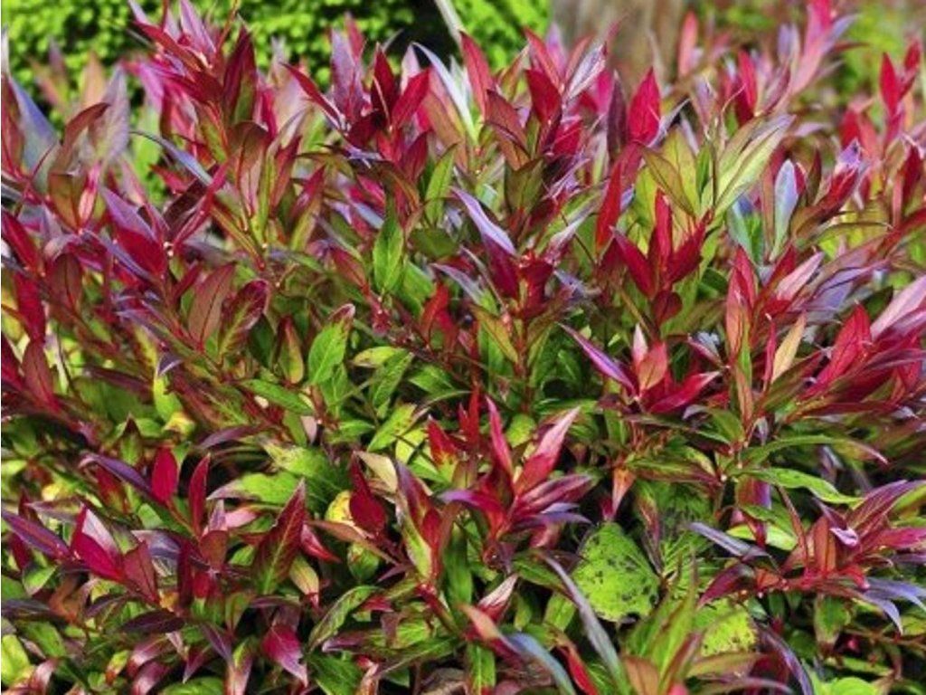 Leucothoe 'Red Lips' – ein immergrüner Strauch, der eine Höhe von 0,4 - 0,6 m erreicht. Die Blätter sind länglich und lanzettlich, glänzend. Während der Sommermonate haben sie eine tiefgrüne Farbe. Beim Austrieb haben sie dann einen bronzefarbenen Schimmer. Im Herbst und Winter haben sie eine dunkelrote bis weinrote Färbung. Die Blüten erscheinen im Mai und Juni. Eine ideale Pflanze für Heidegärten.