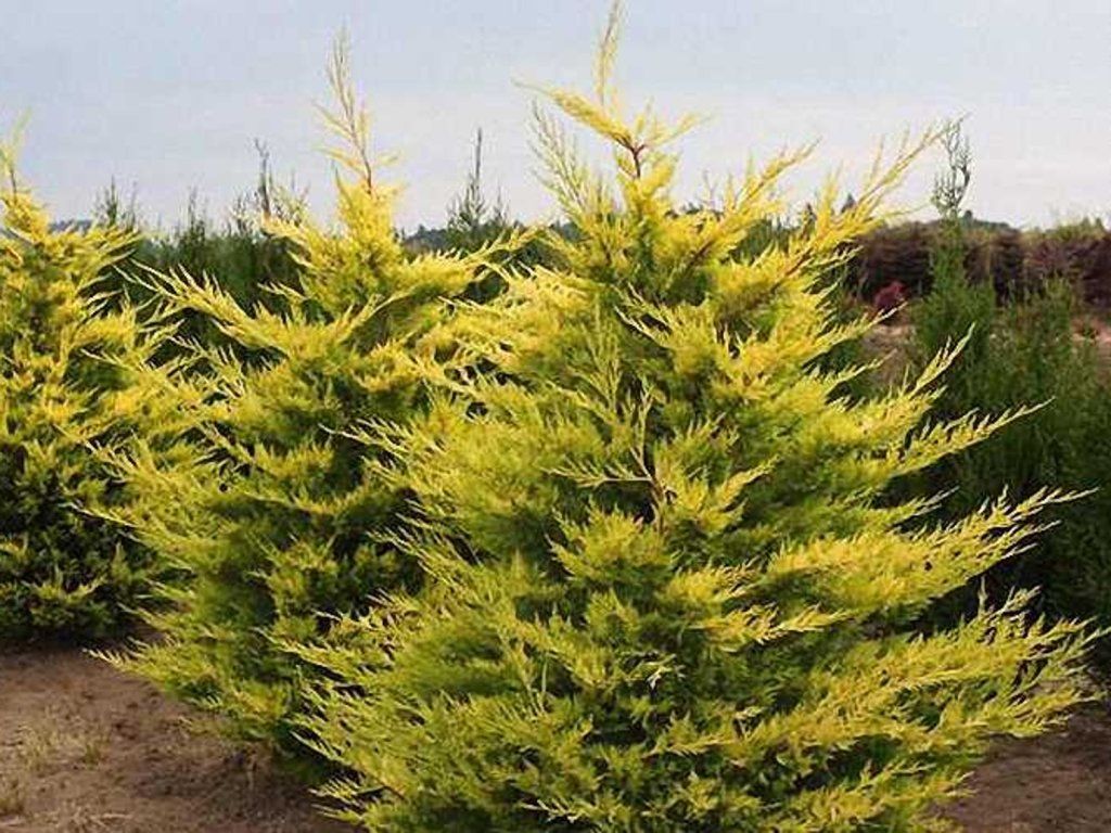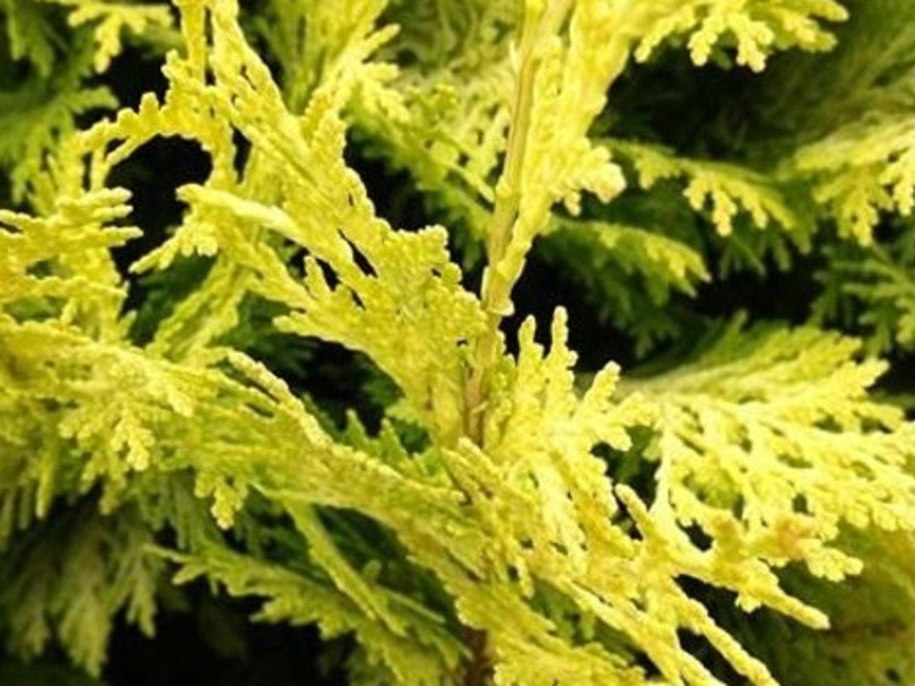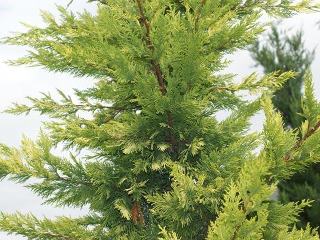 Leyland-Zypresse 'Gold Rider'- eine Kultivarpflanze der Leyland-Zypresse, die sich durch ihre besonderen Farbeigenschaften auszeichnet. Ihre Nadeln haben einen goldgelben Farbton, was sie von gewöhnlichen Arten unterscheidet. Diese Sorte hat den gleichen Habitus wie die klassische Leyland-Zypresse, d.h. ein schnell wachsender Baum mit einer konischen bis säulenförmigen Krone, der unter optimalen Bedingungen bis zu 10 m hoch und 2-4 m breit wird. Er wächst bis zu 60 cm pro Jahr. 'Gold Rider' ist aufgrund seiner besonderen Farbeigenschaften eine sehr attraktive Nadelbaumart. Seine goldenen Nadeln können in der Jugend stärker ausgeprägt sein und unter bestimmten Bedingungen, wie z.B. ausreichend Sonnenlicht, kann diese Farbe intensiver sein. Ihr goldener Glanz bringt interessante Kontraste und Farbvariationen in den Garten. Diese Sorte kann als Solitärpflanze oder als Teil von gemischten Pflanzungen verwendet werden, wo sie dank ihrer ausgeprägten Farbe einen angenehm kontrastreichen Eindruck hinterlässt. Seine Anpassungsfähigkeit und seine ästhetischen Eigenschaften machen ihn zu einer ausgezeichneten Wahl für verschiedene Garten- und Landschaftszwecke.