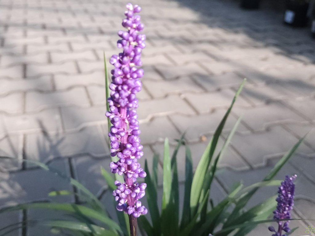 Liriope 'Money Maker' - eine anmutige, niedrige Staude, die im ausgewachsenen Zustand eine Höhe von etwa 20-40 cm erreicht. Sie bildet dichte Horste, aus denen lange Stiele wachsen und auf denen von August bis September Blütenähren mit violetten Blüten blühen. Die Blätter sind schmal, glänzend und dunkelgrün. Geeignet als Unterpflanzung für ausgewachsene Bäume, zur Hangabdeckung und auch als Solitärpflanze oder im Staudenbeet kommt sie schön zur Geltung. Die Pflanze ist pflegeleicht. Liriope ist ein schönes Element in Gärten und bringt Farbe und ein angenehmes Aussehen in jeden Garten.