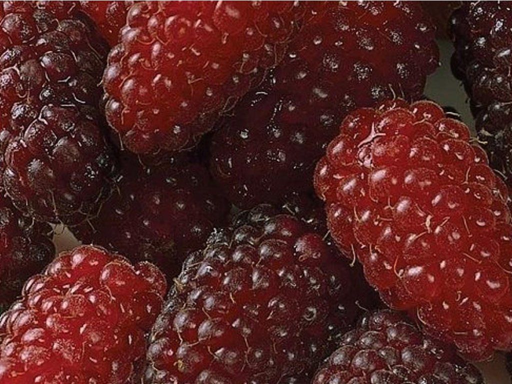 Brombeere 'LoganBerry' - eine Kreuzung zwischen europäischer Himbeere und nordamerikanischer Brombeere mit langen Trieben, die an einer Stütze geführt werden sollten. Typischerweise erreicht sie eine Höhe und Breite von etwa 2 m, mit Trieben, die über 2–3 m lang werden. Die Früchte entstehen an den letztjährigen Trieben, sind länglich bis eiförmig, färben sich bei Reife tiefrot bis dunkelrotviolett und haben einen ausgeprägten süß-säuerlichen Geschmack mit einem Hauch von Brombeere, geeignet für den direkten Verzehr und die Verarbeitung. Die Ernte erfolgt in der Regel von Mitte Juli bis Mitte August, manchmal erscheinen die Früchte bis in den September hinein. Sie ist tolerant gegenüber gängigen Gartenbedingungen und verträgt Fröste bis ca. –27 °C, für eine zuverlässige Ernte ist jedoch ein geschützter Standort ratsam. Dank der Kombination aus schmackhaften Früchten, hoher Widerstandsfähigkeit und geringem Pflegeaufwand stellt sie eine interessante Wahl für alle Gärten dar, insbesondere für diejenigen, die eine Alternative zu herkömmlichen Himbeeren oder Brombeeren suchen.