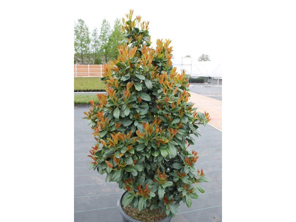 Kirschlorbeer 'Bonaparte' - stammt aus Südosteuropa und Kleinasien und wird in Gärten wegen seiner immergrünen, ledrigen Blätter und der schnellen Schaffung von Sichtschutz angebaut. Die Sorte 'Bonaparte' ist eine lizenzgeschützte Auswahl, die auch als 'Flippi01' geführt wird und mit dem Entdecker Adrian Straver in Verbindung gebracht wird. Sie wird in niederländischen Baumschulen für ihr schmales Wachstum geschätzt. Sie zeichnet sich durch einen säulenförmigen Habitus und dichte Verzweigung aus, sodass sie auch ohne breites Auswachsen eine dichte grüne Wand für Hecken und als Solitärpflanze bildet. Der ausgewachsene Strauch erreicht normalerweise eine Höhe von etwa 2,5–3 m und eine Breite von 0,7–1,2 m, in freiwachsender Form kann er etwa 3,5 m erreichen. Die Blätter sind dunkelgrün, glänzend und steif. Die jungen Triebe treiben in kupferbraunen Tönen aus und werden allmählich grün. Im April und Mai erscheinen aufrechte Trauben kleiner cremeweißer Blüten von etwa 10–15 cm Länge, stellenweise mit einem zarten rosa Hauch und leichtem Duft. Ende Sommer bis Herbst reifen runde schwarze Steinfrüchte, die jedoch nicht zum Verzehr bestimmt sind. Die Pflanze ist giftig, insbesondere die Blätter und Samen enthalten cyanogene Glykoside. Ideal für Hecken, macht auch als Solitärpflanze eine gute Figur.