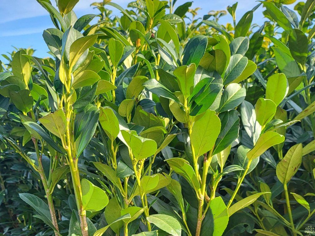 Anbau: Sie gedeiht am besten in voller Sonne bis Halbschatten, in wärmeren Gebieten verträgt sie auch lichteren Schatten. Für die Wintersicherheit ist ein windgeschützter Standort und ein geschütztes Mikroklima abseits von austrocknenden Winden und scharfer Frühlingssonne ratsam. Humoser, nährstoffreicher und durchlässiger Boden mit gleichmäßiger Feuchtigkeit ist vorteilhaft. Lang anhaltende Staunässe erhöht das Risiko von Wurzeltod, daher ist eine Drainage wichtig. Ein pH-Wert von etwa 5,5–7,0 wird empfohlen. Die Pflanzung erfolgt in der Regel von März bis November, je nach Wetterlage. Nach der Pflanzung ist eine regelmäßige Bewässerung entscheidend, und bei immergrünen Pflanzen auch eine Winterbewässerung während der Tauperioden. Nach dem Einwurzeln verträgt sie kurzzeitige Trockenheit. Längere Trockenheit kann sich jedoch durch austrocknende Blattränder bemerkbar machen, daher hilft eine ganzjährige Mulchschicht aus Rinde oder Laub. Die Düngung im Frühjahr mit Kompost oder einem langsam wirkenden Dünger für immergrüne Gehölze fördert die Blattdichte. Überdüngung mit Stickstoff erhöht die Anfälligkeit für Frostschäden. Der Schnitt wird gut vertragen und bei Hecken am häufigsten nach der Blüte oder im Spätsommer durchgeführt. Die Blütezeit ist in der Regel im April–Mai. Die dunklen Früchte reifen im Spätsommer bis Herbst und sind nicht zum Verzehr bestimmt. Die Frosthärte wird laut Quellen meist im Bereich von –15 bis –23 °C angegeben, widerstandsfähigere Sorten können auch niedriger bewertet werden, junge Anpflanzungen profitieren vom Mulch. Für eine Hecke wird ein Abstand von etwa 50–80 cm je nach Wuchsform des Kultivars eingehalten. Im Behälter wird in größerem Substratvolumen mit Drainage, regelmäßiger Bewässerung und Winterschutz des Behälters gegen Durchfrieren kultiviert. An Krankheiten können Blattflecken und Lochfraß auftreten, bei Schädlingen Blattläuse oder Dickmaulrüssler, Probleme werden durch einen nicht übermäßig feuchten Standort und ausgewogene Ernährung eingeschränkt.