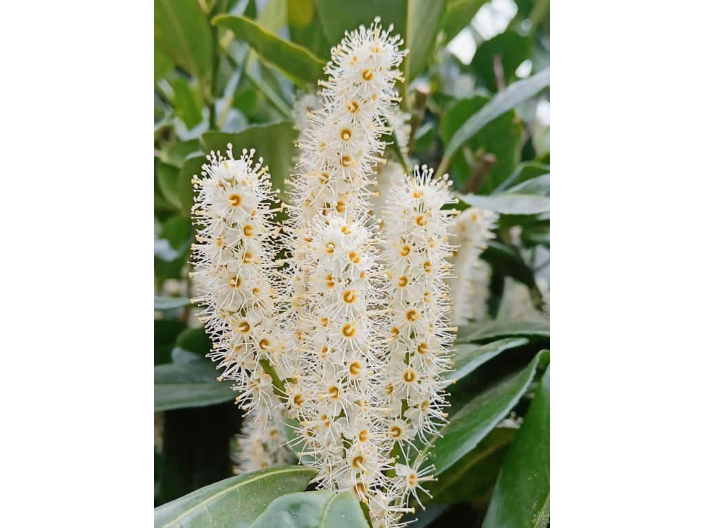 Anbau: Kirschlorbeeren bevorzugen sonnige bis halbschattige Standorte. Direkte Mittagssonne kann für junge Pflanzen zu intensiv sein, daher ist ein leichter Schatten ratsam. Sie benötigen gut durchlässigen, leicht sauren bis neutralen Boden (pH 6–7). Sie bevorzugen keine schweren lehmigen Böden, wo Staunässe an den Wurzeln droht. Optimal ist leichter Lehmboden mit Zusatz von Kompost oder Sand zur Verbesserung der Drainage. In Kübeln wird eine hochwertige Gartenerde gemischt mit Perlit oder Sand empfohlen. Sie mögen regelmäßige Bewässerung, besonders in den ersten Jahren nach der Pflanzung. Der Boden sollte feucht, aber nicht staunass sein. Im Frühling und Sommer wird eine Düngung einmal pro Monat mit einem ausgewogenen Flüssigdünger für Immergrüne empfohlen. In Behältern ist es ratsam, während der Vegetationsperiode auch einen leicht sauren Dünger, z.B. für Rhododendren, hinzuzufügen, um eine gesunde grüne Blattfarbe zu fördern. Sie vertragen Schnitt und Formschnitt gut, was ein dichtes Wachstum fördert. Die beste Zeit für einen leichten Formschnitt ist das Frühjahr, nach den letzten Frösten. Für eine Hecke kann während der Vegetationsperiode geschnitten werden, um eine kompakte Form zu erhalten. Für einzelne Pflanzen gilt ein Mindestabstand von 1,5–2 Metern, damit sich die Sträucher natürlich ausbreiten können. Bei der Pflanzung für eine Hecke wählen wir Abstände von 50–70 cm für eine dichte Hecke. Sie sind meist vollständig frostbeständig.