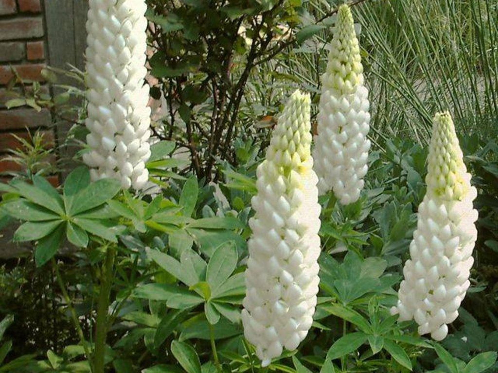 Lupinus Nanus Russell 'Gallery Weiss' - eine kompakte Lupinenart, die sich durch üppige, weiße Blüten auszeichnet. Diese Sorte gehört zur Serie Nanus Russell 'Gallery', die für ihre kompakte Größe und üppigen Blüten bekannt ist, was Lupinen zu einer beliebten Wahl bei Gärtnern macht. Sie erreicht normalerweise eine Höhe von etwa 30-40 Zentimetern, was eine typische Größe für die Lupinen der Serie Nanus Russell 'Gallery' ist. Die Blätter sind in der Regel grün, handförmig gefaltet und wechselständig entlang der Stängel angeordnet, was ein charakteristisches Merkmal von Lupinen ist. Das auffälligste Merkmal sind seine weißen Blüten. Die Blüten sind in aufrechten Blütenständen angeordnet und bilden üppige Trauben, die den Garten schmücken. Blüht normalerweise in den Sommermonaten.