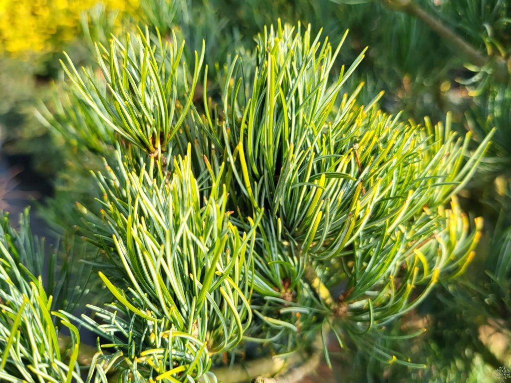 Japanische Mädchenkiefer 'Negishi' - ein sehr beliebter und gefragter Kiefernkultivar. Ihr Hauptmerkmal ist sehr langsames und unregelmäßiges Wachstum. Sie erreicht eine Höhe von 2-3 m und eine Breite von 1,5-2 m. Er hat feste, leicht verdrehte, blaugrüne Nadeln von 4-5 cm Länge, die in Büscheln zu je fünf Stück wachsen. Eignet sich zur Bonsaigestaltung. Die jährlichen Zuwächse liegen bei etwa 10 cm. Ideal als Solitärpflanze. Diese attraktive Sorte sollte in keinem Garten fehlen.