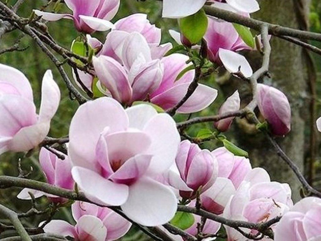 Magnolie 'Atlas' - eine anmutige Kreuzung der Sorten 'Mark Jury' und 'Lennei Alba', die bis zu 4 m hoch und etwa ebenso breit wird. Abgerundete Knospen haben eine zartrosa Farbe, die entfalteten Blütenblätter sind innen weiß. Die becherförmigen Blüten können einen Durchmesser von bis zu 35 cm erreichen. Die länglichen Blätter sind mittelgrün gefärbt und fallen im Herbst ab. Die Blätter erscheinen erst nach der Blüte. Die Pflanze eignet sich auch perfekt als Solitär. Wir empfehlen keinen Rückschnitt bei Magnolien. Insgesamt ist die Magnolie ein beliebtes Gartenelement, das jedem Garten ein zartes und einzigartiges Erscheinungsbild verleiht.
