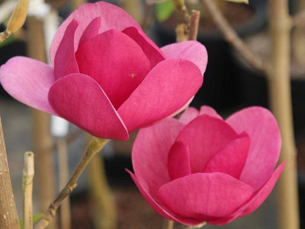 Anbau: Für eine erfolgreiche Kultivierung der Magnolie 'Black Tulip'™ ist die Wahl des richtigen Standorts entscheidend. Sie benötigt volle Sonne oder Halbschatten, wo sie genügend Licht für die Knospenbildung hat. Der Standort sollte vor starkem Wind geschützt sein, der die großen Blüten oder die empfindlichen Zweige beschädigen könnte. Der Boden muss tiefgründig, nährstoffreich, durchlässig und vor allem sauer mit einem pH-Wert von 5,0 bis 6,0 sein. Schwere Lehmböden müssen mit Sand aufgelockert und mit viel Torf oder Laubhumus angereichert werden. Die Pflanzen sind extrem empfindlich gegenüber Kalzium, dessen Überschuss zu Blattvergilbung (Chlorose) und anschließendem Welken führt. Die Pflanzung erfolgt so, dass der Wurzelballen nicht tief in der Erde versinkt. Sie wird in der gleichen Tiefe gepflanzt, in der die Pflanze im Container gewachsen ist. Magnolien haben fleischige, aber flache Wurzeln, daher darf der Boden im Wurzelbereich nicht umgegraben oder gehackt werden. Eine hochwertige Mulchschicht aus zerkleinerter Rinde in einer Stärke von 5 bis 10 cm ist unerlässlich, da sie den Wurzeln eine konstante Feuchtigkeit und Schutz vor Frost bietet. Die Bewässerung muss regelmäßig und reichlich erfolgen, insbesondere in trockenen Sommermonaten, idealerweise mit Regenwasser oder abgestandenem, weichem Wasser. Gedüngt wird im Frühjahr mit Düngemitteln für säureliebende Pflanzen und im Spätsommer mit Kalium-haltigen Düngemitteln für eine gute Ausreifung des Gewebes. Ein Rückschnitt ist nicht notwendig und wird auch nicht empfohlen, da Magnolien schlecht aus altem Holz regenerieren. Es werden nur trockene oder beschädigte Äste unmittelbar nach der Blüte entfernt. Die Frostbeständigkeit ist hoch, es wird eine Widerstandsfähigkeit bis -24 °C angegeben, dennoch wird jungen Pflanzen in den ersten Jahren empfohlen, sie mit Textilien zu schützen.