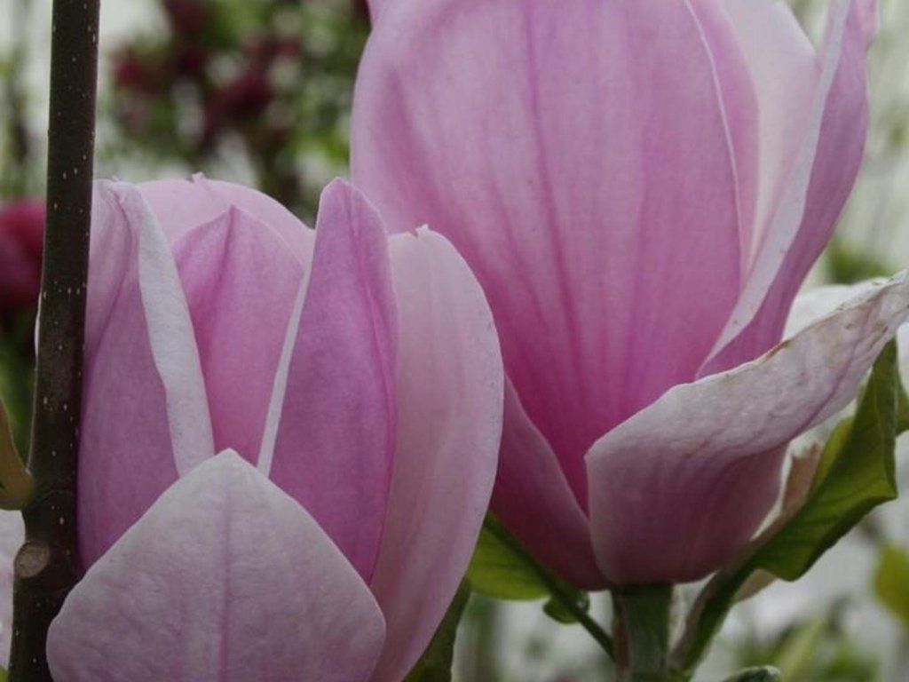 Magnolie 'Coates' - eine Kreuzung aus Magnolia denudata × Magnolia liliiflora, entstanden in Frankreich in der ersten Hälfte des 19. Jahrhunderts. Die Sorte 'Coates' gehört zu den bewährten Formen mit aufrechterem Wuchs, der sich mit dem Alter zu einer volleren, runderen Krone entwickelt. Unter Gartenbedingungen in der Tschechischen Republik erreicht sie eine Höhe von etwa 5–8 m und eine Breite von üblicherweise 4–6 m. Die Blüten öffnen sich im April bis Mai an kahlen Zweigen. Sie sind becherförmig, oft 12–20 cm, innen reinweiß und außen zartrosa mit einem Hauch von Lavendel. Bei jüngeren Pflanzen erscheinen die Blüten früh, können aber in kälteren Lagen durch späten Frost beschädigt werden. Die Blätter sind laubabwerfend, elliptisch bis eiförmig, mittelgrün, bilden im Sommer eine dichte Krone und vergilben im Herbst. Nach der Blüte können sich Sammelbalgfrüchte bilden, aus denen im Herbst rote Samen hervorgehen, die eher aus der Nähe dekorativ sind. In warmen Jahren zeigen sich manchmal einige späte Blüten an neuen Trieben, sie sind jedoch weniger ausgeprägt als die Frühlingswelle. In der Komposition kommt 'Coates' am besten als Solitär vor einem dunkelgrünen Hintergrund zur Geltung, zum Beispiel bei Eiben, Tannen oder immergrünen Rhododendren, wo der Kontrast der Blüten an grauen Ästen zur Geltung kommt. Der Raum unter der Krone wird gut durch Frühlingszwiebelblumen und Stauden ergänzt, die das Licht vor dem Blattaustrieb nutzen.