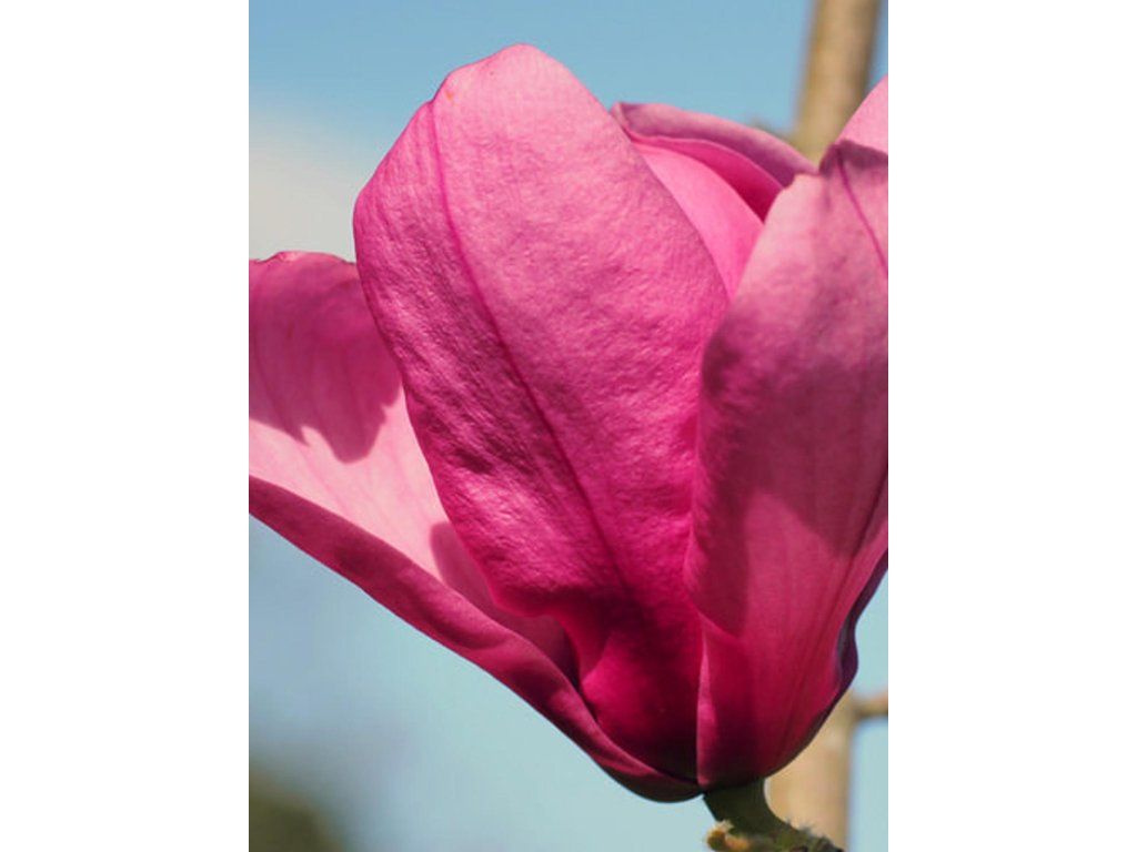 Anbau: Magnolien pflanzt man an sonnigen Standorten, die auch leichten Halbschatten vertragen und möglichst vor starkem Wind geschützt sein sollten. Der Boden sollte nährstoffreich und feucht, aber gut durchlässig sein, mit Zugabe von Torf (ideal ist eine Mischung aus Kompost, Torf und Sand). Wir halten die Magnolie gut gemulcht, damit der Boden nicht austrocknet. Beim Graben in der Nähe der Magnolie sollte man auf die flachwurzelnden Wurzeln achten. Wenn möglich, vermeiden wir das Beschneiden von Magnolien. Sie verträgt Rückschnitt im Allgemeinen schlecht, bei Bedarf können sehr junge Pflanzen sofort nach der Blüte geformt werden. Magnolien sind bis ca. -29 °C voll frostbeständig. Sie blühen im April und Mai.