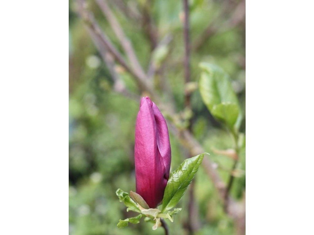 Magnolie 'Susan' - eine elegante Kreuzung zwischen Magnolie liliiflora und Magnolie stellata, ist eine exquisite Wahl für Gärtner, die eine kompakte Pflanze mit wunderschönen Blüten suchen. Dieser anmutige Strauch erreicht eine Höhe von etwa 3 bis 4 Metern, was ihn zu einer mittelgroßen Pflanze macht. Ihre schönen Blüten in verschiedenen Violett- und Rosatönen sind kleiner, aber sie verlieren nichts von ihrer Farbintensität oder ihrem angenehmen Duft. Das Einzigartige an dieser Magnolie ist die lange Blütezeit und die sehr reiche Blüte schon in jungen Jahren. Die ersten Blüten können sich Mitte April öffnen, auch bei unterschiedlichen Temperaturen. Dank ihres besonderen Blühzyklus bildet sie auch während des Austreibens neue Knospen, was eine Blüte bis in den Juni hinein ermöglicht, wenn auch weniger üppig als während der Hauptblütezeit. Die Blüten öffnen sich aus mondsichelförmigen Knospen, außen rosa, purpurrot, innen hellrosa-violett. Dank ihres kompakten Wuchses ist sie die ideale Wahl für Gärten mit begrenztem Platz, wobei ihre schönen Blüten am Ende des Frühlings einen ansprechenden Anblick bieten. Die Blätter sind oval-eiförmig und von mittlerer bis dunkelgrüner Farbe. Für diejenigen, die eine Pflanze mit nicht nur schönen Blüten, sondern auch mit der richtigen Größe für kleinere Gärten und Behälter suchen, ist die Magnolie 'Susan' eine ausgezeichnete Wahl.