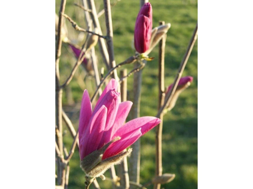 Anbau: Magnolien pflanzt man an sonnigen Standorten, die auch leichten Halbschatten vertragen und möglichst vor starkem Wind geschützt sein sollten. Der Boden sollte nährstoffreich und feucht, aber gut durchlässig sein, mit Zugabe von Torf (ideal ist eine Mischung aus Kompost, Torf und Sand). Wir halten die Magnolie gut gemulcht, damit der Boden nicht austrocknet. Beim Graben in der Nähe der Magnolie sollte man auf die flachwurzelnden Wurzeln achten. Wenn möglich, vermeiden wir das Beschneiden von Magnolien. Sie verträgt Rückschnitt im Allgemeinen schlecht, bei Bedarf können sehr junge Pflanzen sofort nach der Blüte geformt werden. Magnolien sind bis ca. -29 °C voll frostbeständig. Sie blühen im April und Mai.