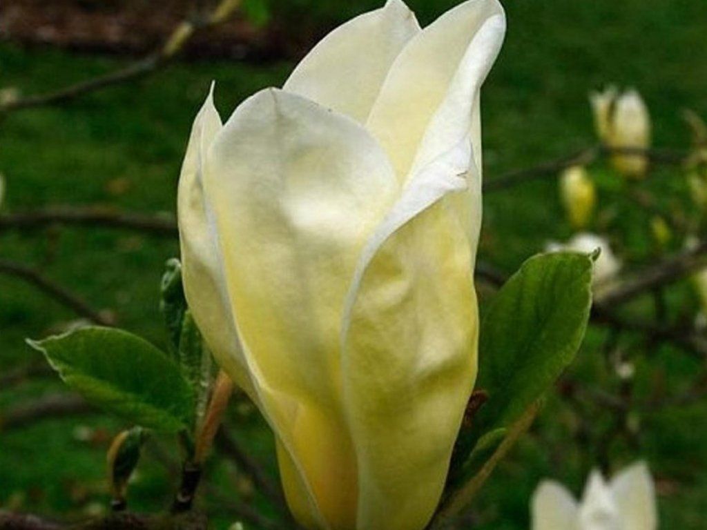Magnolie 'Yellow Lantern' - ein laubabwerfender Strauch oder Baum, der zu den gelb blühenden Hybridmagnolien gehört, die in den USA gezüchtet wurden. Es handelt sich um eine Kreuzung aus Magnolia acuminata var. subcordata und Magnolia × soulangeana 'Alexandrina', die gute Vitalität mit zart gefärbten Blüten und regelmäßigem Wachstum verbindet. Unter unseren Bedingungen wächst sie als kleinerer Baum mit stabilem Gerüst, jung kegelförmig, später breit-oval, üblicherweise 4–6 m hoch und 3–5 m breit, auf nährstoffreichem Boden auch mehr. Die Blätter treiben gleichzeitig mit den Blüten oder kurz danach aus, sind breit-eiförmig bis flach vierlappig, im Sommer tiefgrün und färben sich im Herbst gelblich. Von April bis Mai öffnen sich an den Triebspitzen tulpenförmige Blüten von 10–12(–15) cm, cremefarben bis gelbgrün, an der Basis oft mit einem zarten rosa Schimmer. Einzelne Blüten halten mehrere Tage und bei kühlerem Wetter verlängert sich die Blütezeit. An wärmeren Tagen duften sie leicht und bieten frühen Nektar und Pollen, wodurch sie die ersten aktiven Bestäuber anlocken. Nach der Blüte können sich längliche Sammelbalgfrüchte mit geflügelten Nüsschen bilden, eher unauffällig. Am besten kommt sie als Solitär über einer Unterpflanzung von Funkien, Farnen und Ziergräsern zur Geltung, eventuell im Kontrast zu dunklen Nadelgehölzen, wo die gelbe Farbe natürlich und rein wirkt.