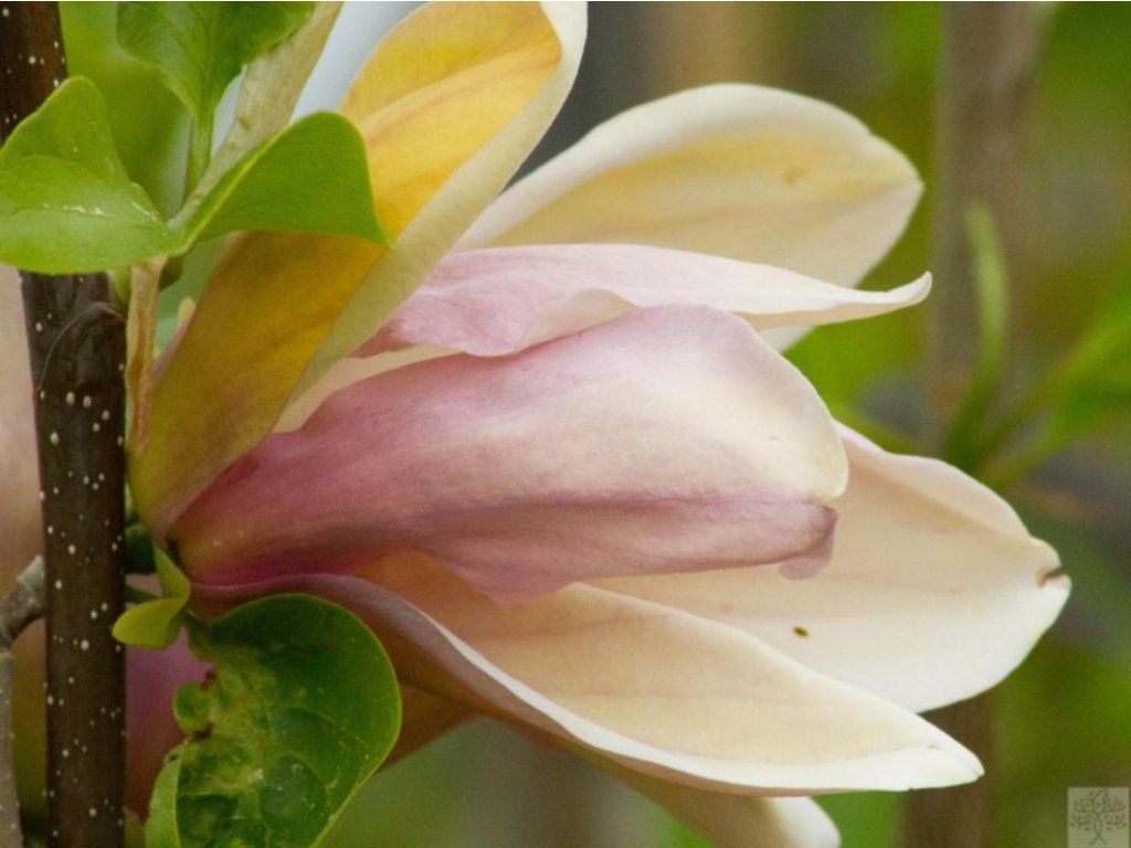 Magnolie x brooklynensis 'Eva Maria' - eine beeindruckende Sorte mit absolut einzigartigen Blüten, in denen sich Rosatöne, Hellgrün und Honiggelb mischen. Die Blütenblätter sind dick und wachsartig, bestehen aus 6 Teilen und bilden eine aufrechte, tulpenförmige Form. Die Blütezeit ist im April und Mai. Sie wächst als kleinerer Strauch bis zu einer Höhe von 1,5 m und einer Breite von 2 m. Die Blätter sind tiefgrün, eiförmig und erscheinen nach der Blüte. Dieser Strauch eignet sich auch hervorragend als Solitärpflanze, dank seines Wuchses ist er auch für kleinere Gärten geeignet. Bei jüngeren Exemplaren ist es ratsam, in den ersten Jahren nach der Pflanzung einen Winterschutz in Betracht zu ziehen, aber mit den Jahren wird sie kältere Winter vertragen können. Dank ihres kompakten Wuchses und ihrer interessanten Blütenfarbe eignet sie sich für kleine und mittelgroße Gärten, wo sie als Solitärpflanze oder als Zierelement in Kombination mit anderen Gehölzen dient.