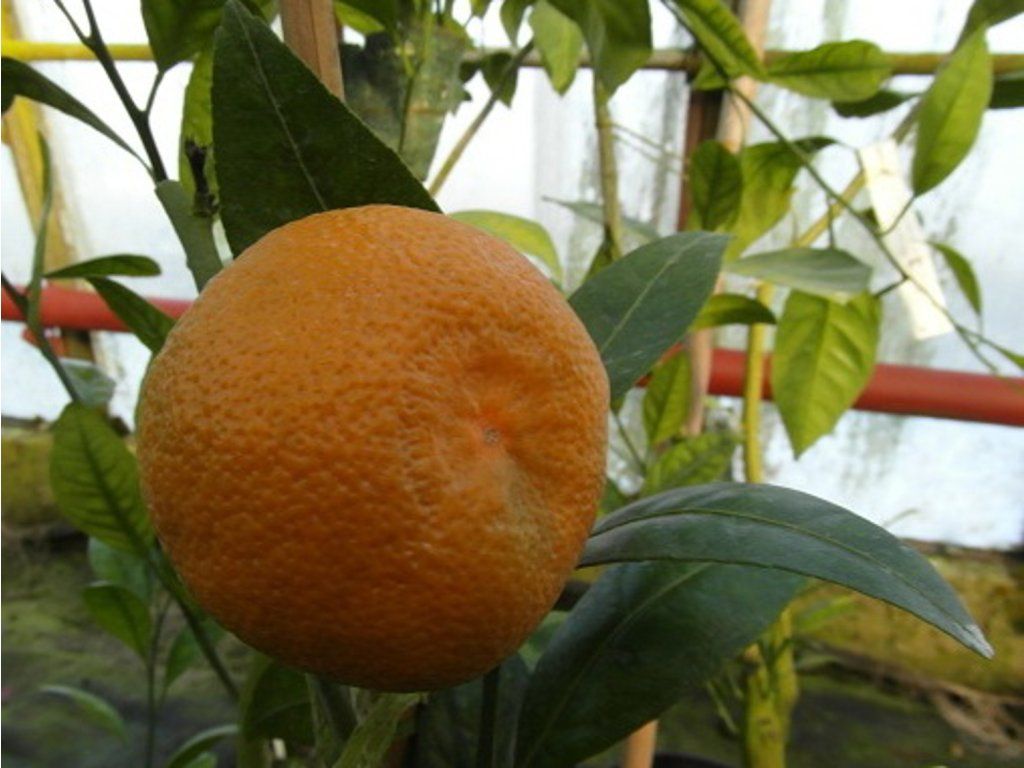 Anbau: Volle Sonne und ein warmes Mikroklima sind ideal, z. B. an einer Süd- oder Westwand, wo die Reifung beschleunigt wird. Das Substrat sollte leicht, luftig und schnell drainierend sein, eine Mischung aus Kompost, Kokossubstrat und Perlit mit einem pH-Wert von 6 bis 6,5. Während der Saison wird gleichmäßig gegossen, der Boden darf weder matschig noch völlig ausgetrocknet sein. Düngung von März bis August mit einem Zitrusdünger, im Mai und Juni ein höherer Kaliumanteil für ausgewogenen Geschmack und Farbe, Magnesium und Eisen werden regelmäßig ergänzt. Der Schnitt nach der Ernte zielt darauf ab, überkreuzte und überlastete Triebe zu entfernen, wodurch die Sonneneinstrahlung der Früchte verbessert wird. Der Anbau in Töpfen mit einem Volumen von 25 bis 40 Litern ist bewährt, Umtopfen nach zwei Jahren in einen etwas größeren Topf. Die Sorte verträgt kurzzeitig Kälte, wird aber im Oktober bis November in einen kühlen, hellen Raum mit 3 bis 8 °C gebracht. Die Überwinterung ist ideal in einem temperierten Gewächshaus, auf einer überdachten Veranda mit natürlichem Licht oder an einem Ostfenster in einem kühlen Flur, der Topf muss von der kalten Bodenfläche isoliert werden.