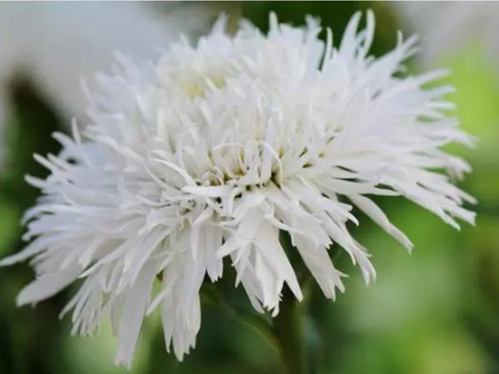 Margerite 'Sante' - besticht auf den ersten Blick durch ihre vollen, reinweißen Blüten mit gelber Mitte. Die Blüten haben einen Durchmesser von ca. 6 - 8 cm. Sie blühen im Juni und Juli, und wenn die Blüten nach dem Verblühen entfernt werden, blüht die Pflanze im Herbst ein zweites Mal. Die Blätter sind typisch gezahnt, dunkelgrün gefärbt. In der Reife erreicht die Margerite eine Höhe von 60 - 80 cm. Geeignet für gemischte und Staudenbeete. Kann auch zum Schnitt verwendet werden. Eignet sich auch für Töpfe oder Behälter auf Terrassen oder Balkonen.