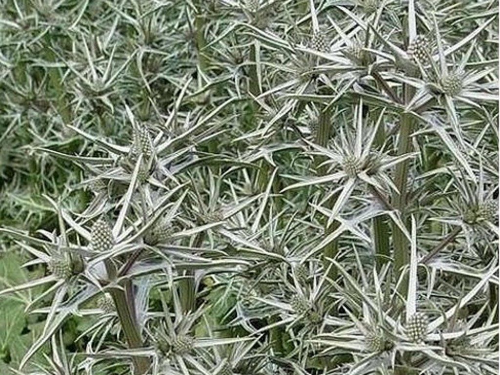 Mannstreu verschiedenblättrig - stammt aus Nordafrika, Marokko, wo sie in den Bergen, auf Felsen und steinigen Hängen wächst. Mannstreu verschiedenblättrig gedeiht am besten in gut durchlässigem, sandigem bis steinigem, nährstoffarmem Boden. Die Wahrscheinlichkeit, dass sie den Winter nicht übersteht, liegt viel eher in Fäulnis als im Erfrieren. Die Frostbeständigkeit wird bis -28,9°C angegeben. Benötigt volle Sonne. Sie gedeiht in den Fugen von Mauern und Pflastersteinen, in Steingärten und Schotterbeeten. Sie eignet sich hervorragend für floristische Arrangements und zum Trocknen.