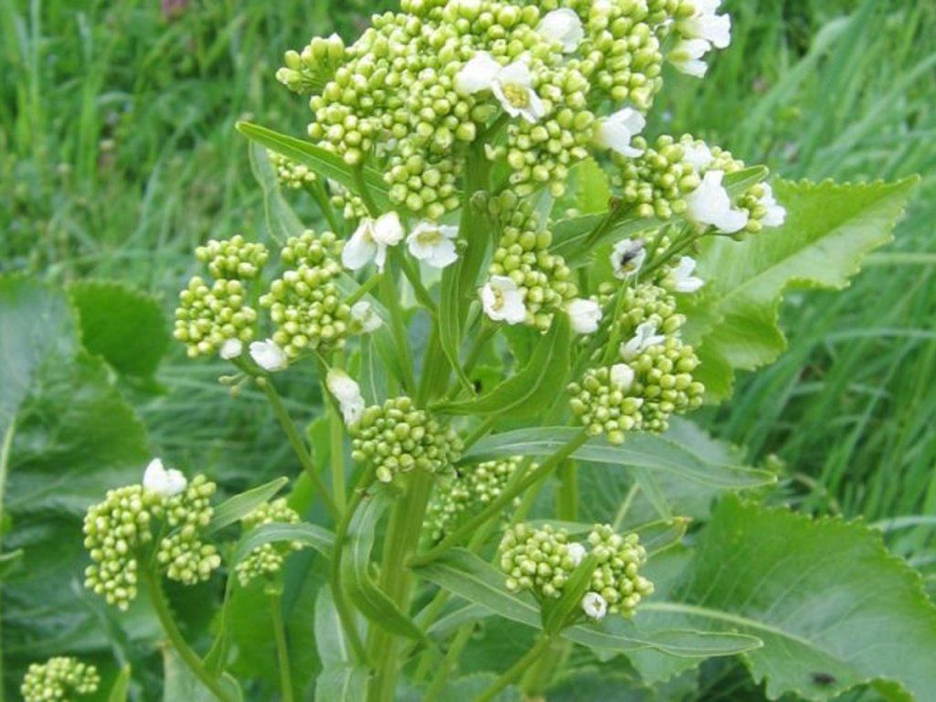 Meerrettich 'Meerrettich' - die essbare Wurzel des Meerrettichs kennt wahrscheinlich jeder, ob er sie nun mag oder nicht. Als Pflanze wächst sie auf eine Höhe von 100-120 cm. Sie blüht von Mai bis Juni mit einer weißen, traubigen Blüte. Wenn Sie ihn für seine Wurzeln und nicht für seinen oberirdischen Teil anbauen, schneiden wir die Blüten ab, damit sich die Pflanze nicht erschöpft. Frosthart.