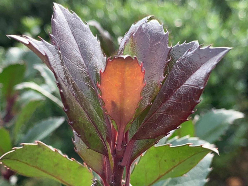 Meserve-Stechpalme 'Viking' - ein immergrüner Strauch, der eine Höhe und Breite von etwa 1 - 1,5 m erreicht. Die Pflanze ist männlich, bildet keine Beeren und dient als Bestäuber. Glänzende, dunkelgrüne Blätter sind weicher als üblich; sie sind also nicht so stachelig wie bei anderen Kultivaren. Im Herbst färben sich die am stärksten exponierten Blätter kupfer-weinrot. Der Habitus der Pflanze ist relativ dicht, sehr gut verzweigt. Die Pflanze eignet sich daher für die Kultivierung in Behältern, aber auch für die Pflanzung in niedrige Hecken.