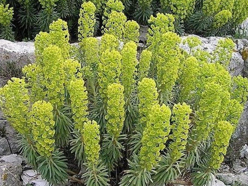 Mittelmeer-Wolfsmilch ssp.wulfenii - diese Wolfsmilch ist eine der schönsten ihrer Art in Europa. Er stammt aus Portugal und dem Mittelmeerraum. Es handelt sich um eine buschig wachsende, immergrüne Staude, die eine Höhe von 130 cm erreicht. Sofort nach der Blüte ist es notwendig, die Stängel fast bis zum Boden zurückzuschneiden, um das Wachstum neuer Triebe zu fördern, an denen sie im nächsten Jahr blühen wird. Sie ist nicht anspruchsvoll an den Bodentyp, bevorzugt aber sauren Boden, der während der Saison mäßig feucht ist, aber im Winter so trocken wie möglich sein muss, und einen sonnigen Standort oder Halbschatten. Ohne Beschädigung von Blüten und Blättern verträgt sie -15°C. Die sicherste Anbaumethode ist im Behälter, den Sie im Winter in einen kühlen, hellen Raum bringen.