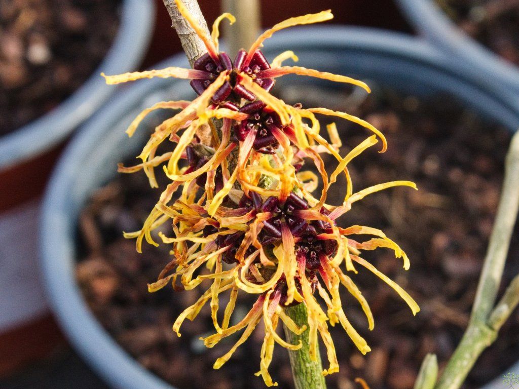 Anbau: Ein geschützter Standort in voller Sonne oder leichtem Halbschatten ist vorteilhaft, um die reiche Blüte und die satten Herbstfarben zu fördern. Der Strauch bevorzugt sauren bis neutralen, humosen, mäßig feuchten, aber durchlässigen Boden mit einem pH-Wert von etwa 5,0-6,5 ohne ständige Staunässe. In schwereren Böden profitiert ein Hochbeet mit Torf- und Kompostzugabe sowie eine Mulchschicht, die Temperaturschwankungen und Verdunstung reduziert. Die Setzlinge werden von März bis Mai oder im Herbst von September bis November mit einem Abstand von etwa 2,5-3 m gepflanzt, damit die Pflanze genügend Platz zur vollen Entfaltung ihrer Krone hat. Die Bewässerung ist in den ersten Jahren nach der Pflanzung und bei längerer Sommertrockenheit am wichtigsten, wobei eine tiefere, weniger häufige Bewässerung gewählt wird; bei älteren Exemplaren ist das Wurzelsystem bereits widerstandsfähiger. Gedüngt wird sparsam, im Frühjahr genügt eine Schicht gut verrotteten Komposts oder ein langsam lösliches Düngemittel für Ziersträucher. Der Hexenstrauch verträgt nur einen leichten Formschnitt unmittelbar nach der Blüte, wobei vor allem beschädigte und sich kreuzende Äste entfernt werden; ältere Pflanzen regenerieren sich von stärkeren Eingriffen schlechter. Unter unseren Bedingungen ist der Strauch bis -25 °C frosthart, junge Pflanzen schätzen jedoch eine Wintermulchschicht im Wurzelbereich und Windschutz. Im Allgemeinen handelt es sich um eine gesunde Art, die wenig von Schädlingen befallen wird. In übermäßig feuchten Böden können Pilzkrankheiten der Wurzeln oder Rinde auftreten, denen eine gute Drainage und eine geeignete Standortwahl vorbeugen. Bei geeignetem Standort und grundlegender Pflege wird der Hexenstrauch zu einer langlebigen Dominante des Wintergartens und einer zuverlässigen Quelle für Blüten für frühe Frühlingssträuße.