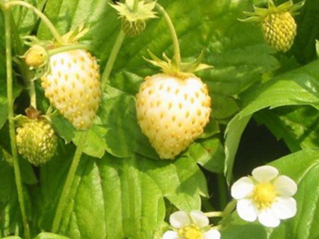 Erdbeere 'Yellow Wonder' - eine originelle Erdbeersorte mit ungewöhnlichen gelben Früchten, die für Gartengestaltung und Kübelpflanzungen einen unkonventionellen visuellen Akzent setzt. Die Pflanze bildet niedrige, dichte Horste mit dunkelgrünen Blättern, typisch für Walderdbeeren. Die Früchte sind zart süß und aromatisch mit einem leicht waldigen Geschmack, weniger ausgeprägt säuerlich als bei klassischen roten Erdbeeren und durch die gelbe Färbung weniger attraktiv für Vögel. Die Reifung erfolgt schrittweise von Juni bis zum Herbst, was eine langfristige Ernte frischer Früchte während der gesamten Saison ermöglicht. Die Sorte ist frosthart, anspruchslos im Anbau und resistent gegen gängige Krankheiten. Dank ihres niedrigen, kompakten Wuchses eignet sie sich sowohl für Staudenbeete als auch für Kübel und Hängekörbe, wo sie mit ihren unkonventionellen Früchten und dekorativen Blättern beeindruckt.
