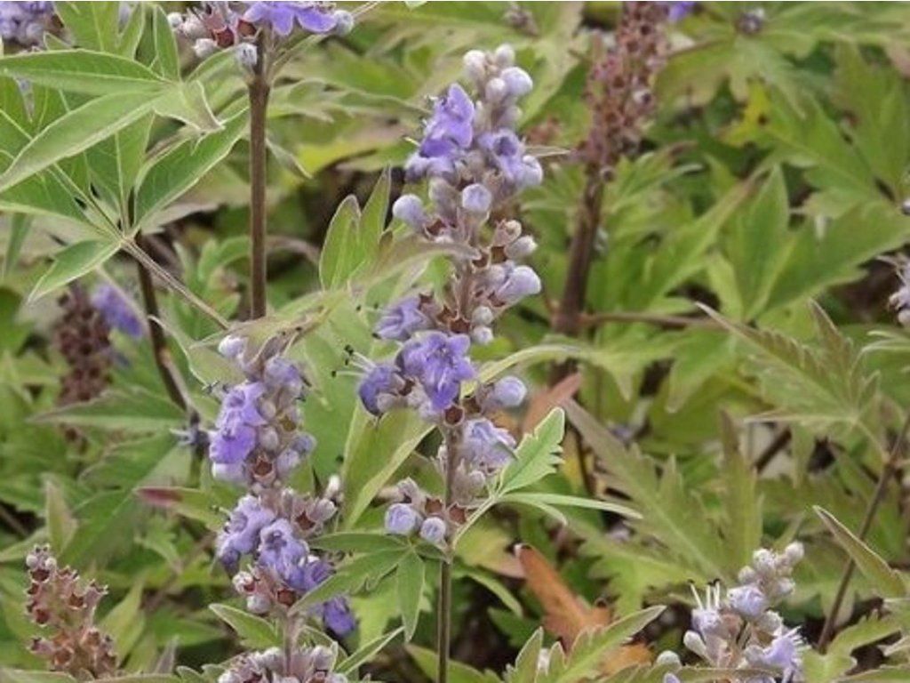 Keuschlamm 'Laciniata' - ein laubabwerchender Strauch mit aufrechtem und verzweigtem Wuchs. Ideal für blühende Hecken. Die Pflanze wird auch als Mönchspfeffer bezeichnet. Sehr trockenheitsresistent. Wächst auf eine Höhe von 1 - 2 m bei gleicher Breite. Die Blätter sind frischgrün und sehr fein eingeschnitten. Stängel und Blattstiele sind braun gefärbt. Die Blätter wirken sehr leicht und luftig. Nach dem Absterben werden sie schwarz. Die Blüten sind in aufrechten Rispen angeordnet, die bis zu 30 cm hoch werden können und blau-violett gefärbt sind. Sie blühen im Sommer und halten bis zum Herbst, sie duften sehr angenehm.