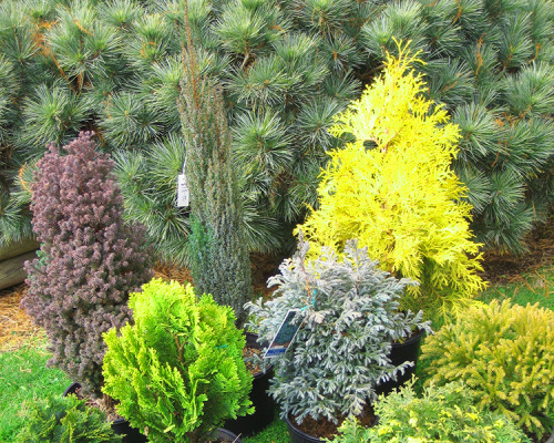 Sie haben keinen großen Garten? Das macht nichts. Viele Nadelbäume wachsen sehr langsam und kompakt. Sitka-Fichte (Picea glauca): Die Ikone ist die kegelförmige 'Conica'. Wir bieten auch Farbmutationen an, wie 'Daisy's White' (treibt im Frühling cremig-weiß aus) oder das bläuliche 'Sander's Blue'. Kniekiefer (Pinus mugo): Sorten wie 'Pumilio' oder die gelbe 'Carsten' sind niedrig wachsende Polster, die sich für Steingärten und Tröge eignen.