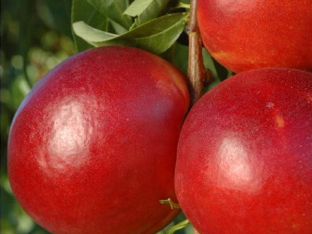 Nektarine 'Fire Top' - eine aus Amerika stammende Sorte. Er ist sehr widerstandsfähig gegen Frost und Krankheiten. Die Früchte sind mittelgroß und fest, mit einer länglichen Form. Die Schale ist fast vollständig mit dunkelroter Farbe bedeckt. Das Fruchtfleisch ist gelb, fester, haftet nicht am Kern. Der Geschmack ist gut, aromatisch, sehr süß mit geringer Säure. Wir ernten sie im Juli.
