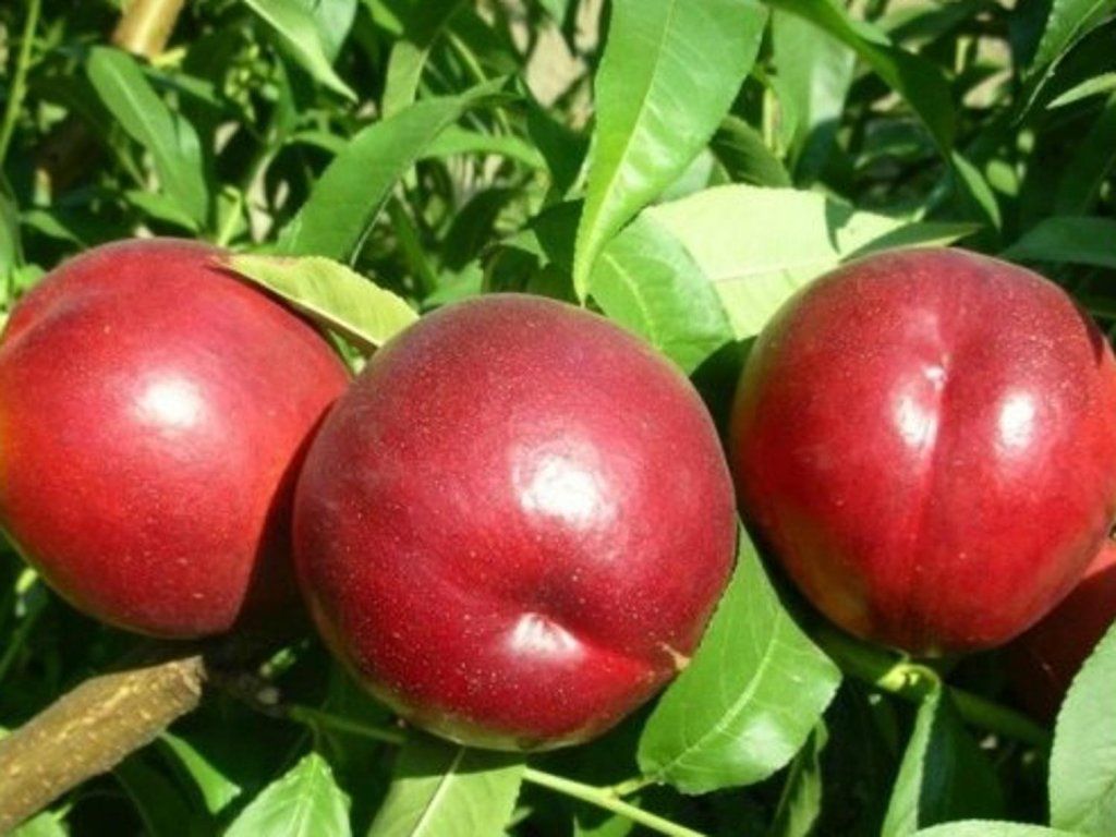 Nektarine 'Gea' - diese selbstfruchtende Nektarine ist sehr gut resistent gegen Krankheiten, Fruchtplatzer und Frost. Die Früchte sind mittelgroß. Die Schale ist glatt und glänzend und fast vollständig mit einer dunkleren roten Färbung bedeckt. Formell ist die Frucht rund. Das Fruchtfleisch ist gelb gefärbt, der Geschmack ist sehr ausgewogen, süß und angenehm. Sie duften wunderbar. Wir ernten die Früchte etwa ab Mitte Juli. Diese Neuheit wird Sie begeistern, die Ernte ist reichlich und sehr zuverlässig.