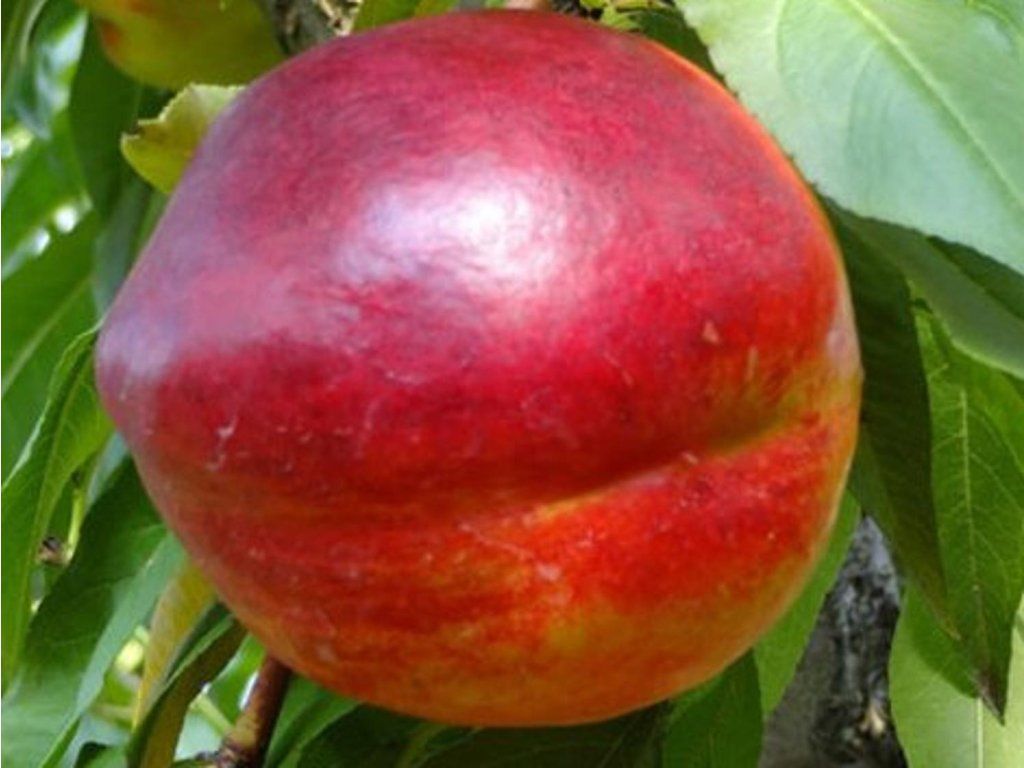 Nektarine 'Orion' - eine relativ neue, hochresistente selbstfruchtbare Sorte mit großen gelb-roten Früchten. Das Fruchtfleisch ist fest, gelb und ausgewogen im Geschmack. Die Sorte ist sehr ertragreich. Reift Ende August.
