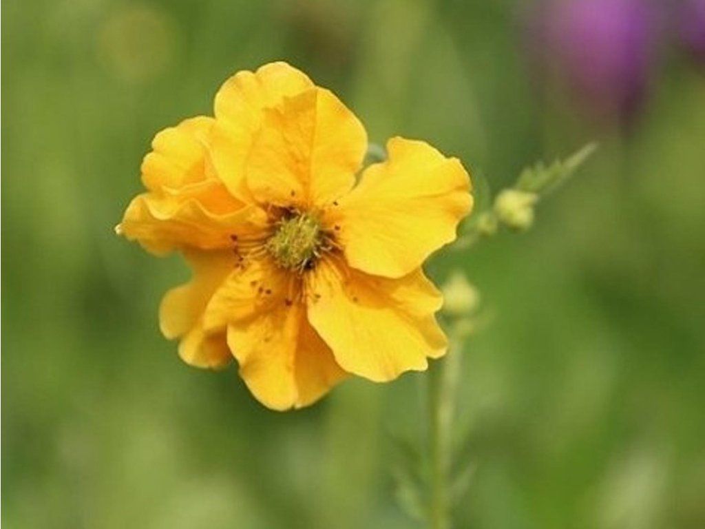 Geum hybr. 'Goldball' - eine schöne und anspruchslose Staude, die für jedes Beet oder Steingarten geeignet ist. In der Reife erreicht die Pflanze eine Höhe von etwa 60 bis 80 cm. Die Blüten sind halb gefüllt und bestehen aus zarten, leicht gewellten Blütenblättern in sattgelber Farbe. Die Blütezeit beginnt im Juni und dauert den ganzen Sommer bis August an. Eignet sich hervorragend für Beete, Steingärten oder in Gefäßen mit anderen niedrigen Staudensorten. Sie ist pflegeleicht und voll frosthart.