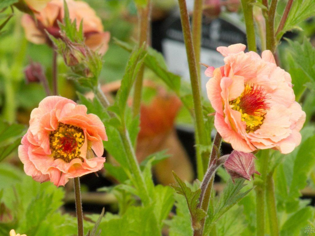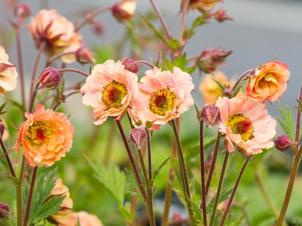 Nelkenwurz 'Mai Tai' <\/strong>- <\/b>gehört zur Familie der Rosengewächse und wird in Gärten als langlebige Staude mit auffälligen Blütenstielen eingesetzt. Die Sorte 'Mai Tai' entstand in den USA in Illinois, wo sie 2005 vom Züchter Brent Horvath aus der Kreuzung der Sorten 'Mango Lassi' und 'Flames of Passion' selektiert und 2012 unter Pflanzenschutzrecht eingetragen wurde. Sie bildet kompakte, bodennahe Horste aus fein behaarten, gelappten Blättern mit samtiger Oberfläche. Über dem Laub wachsen kräftige Stiele, die Blüten von etwa 2,5–3 cm Durchmesser tragen. Im ausgewachsenen Zustand erreicht sie eine Höhe von etwa 35–45 cm in Blüte und eine Breite von 30–35 cm. Während der Blüte haben sie einen warmen Zinnoberrot-Ton, gehen allmählich in Aprikose und schließlich in Altrosa über, sodass an einem Horst im Mai und Juni mehrere Farbtöne gleichzeitig zu sehen sind. Ein Duft wird üblicherweise nicht angegeben. Nach der Blüte bilden sich dekorative Fruchtstände mit borstigen Nüsschen, die auch nach dem Schnitt haltbar sind und kleine Bestäuber anlocken. Die Blütenstiele eignen sich auch für kleinere Sträuße, da sie ihre Form behalten und die Farbe im Laufe der Zeit in zartere Töne übergeht. Sie eignet sich für gemischte Staudenbeete, vor Sträuchern und für größere Gefäße, wo sie sich gut mit Ziergräsern, Katzenminze, Storchschnabel oder Glockenblumen in Blautönen kombinieren lässt. Die feine Pastellzeichnung wirkt auch in städtischen Pflanzungen beruhigend.