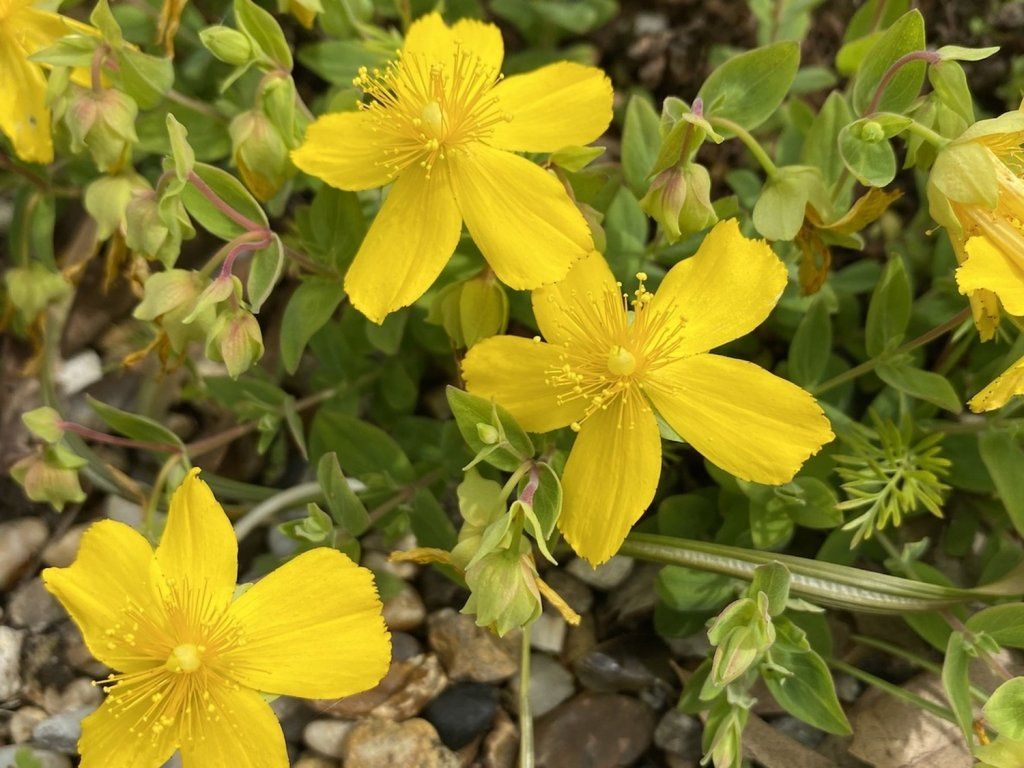 Hypericum olympicum - eine Staude, die einen niedrigen Strauch bildet. Ursprünglich stammt diese Pflanze aus Griechenland und Bulgarien. Im Erwachsenenalter erreicht die Pflanze eine Höhe von nur etwa 15–20 cm. Die Blätter sind lanzettlich und grün-grau gefärbt. Die Blüten bestehen aus 5–6 zarten Blütenblättern in sattgelber Farbe. In der Mitte der Blüte befinden sich Staubgefäße mit Staubbeuteln, die ebenfalls gelb gefärbt sind. Ideal für die Bepflanzung von Beeten, Steingärten oder in Behältern mit anderen Arten von niedrigen Stauden. Sie ist pflegeleicht und voll frosthart.