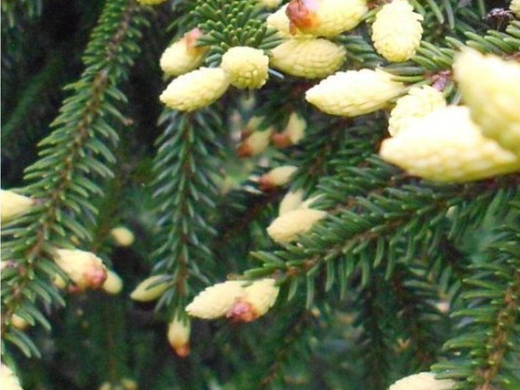 Fichte 'Aureospicata' - ein üppig wachsender Kultivar, der aus den Bergwäldern des Kaukasus und des nordöstlichen Türkei stammt, wo er an kühlen, feuchten Standorten auf tieferen, humosen Böden wächst. Der Kultivar 'Aureospicata' wird wegen seines auffallend gelben bis goldgelben Austriebs im Frühjahr angebaut. Junge Triebe bringen die Krone für mehrere Wochen zum Leuchten, im Sommer beruhigt sich die Farbe zu Grün und das Gehölz bleibt auch im Winter ein immergrünes Element. Der Habitus ist regelmäßig kegelförmig bis eng pyramidisch, die Äste sind dicht und fein geschichtet, sodass er „weicher“ wirkt als die gewöhnliche Fichte, aber farblich deutlich heller ist. Die Nadeln sind kurz, steifer und stachelig, das Harz duftet beim Zerreiben. In der Nähe von Terrassen und Wegen wird daher oft ein Standort gewählt, an dem die Krone nicht eingegriffen werden muss. Die Blüte erfolgt unauffällig im Frühjahr. An älteren Bäumen können sich kleine männliche Staubkätzchen und hängende Zapfen bilden, die nach der Reife Samen freisetzen. In der Komposition fungiert er als heller Akzent zu dunkelgrünen Eiben, Tannen, Kirschlorbeer oder Buchsbaum, passt auch gut zu Ziergräsern, Heidekraut und Rhododendren, die das Frühlingsgold hervorheben.