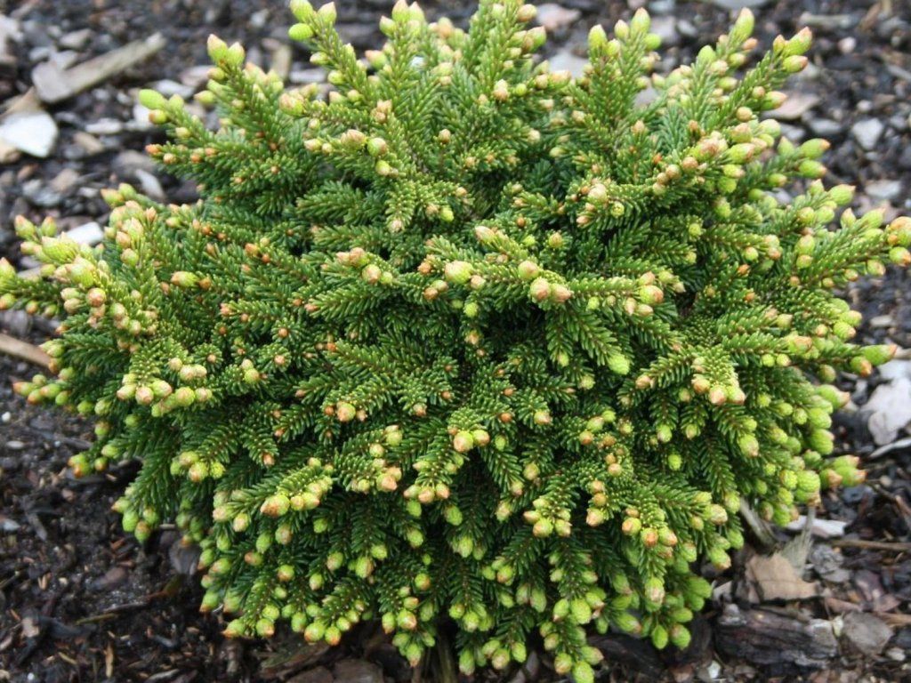Fichte 'Juwel' - ein schöner Hexenbesen - d.h. eine kleine, langsam wachsende Pflanze, die alle positiven Eigenschaften der ursprünglichen Art beibehält, abgesehen von der Wuchsgeschwindigkeit. Juwel hat dunkelgrüne Nadeln, eine kugelförmige Form, die allmählich in eine konische übergeht. Die jährlichen Zuwächse sind nur 2 cm lang und im Frühling schmückt der Strauch mit einer wunderschönen, frischgrünen Farbe, die scharf mit dem dunkelgrünen Nadelwerk des Vorjahres kontrastiert. Der Kultivar erreicht standardmäßig eine Höhe von ca. 0,6 - 0,8 m. Dank seines Wuchses eignet er sich für Staudenbeete, Steingärten oder Kübel. Er ist nicht anspruchsvoll im Anbau und sehr frostbeständig. Diese attraktive Sorte sollte in keinem Garten fehlen.