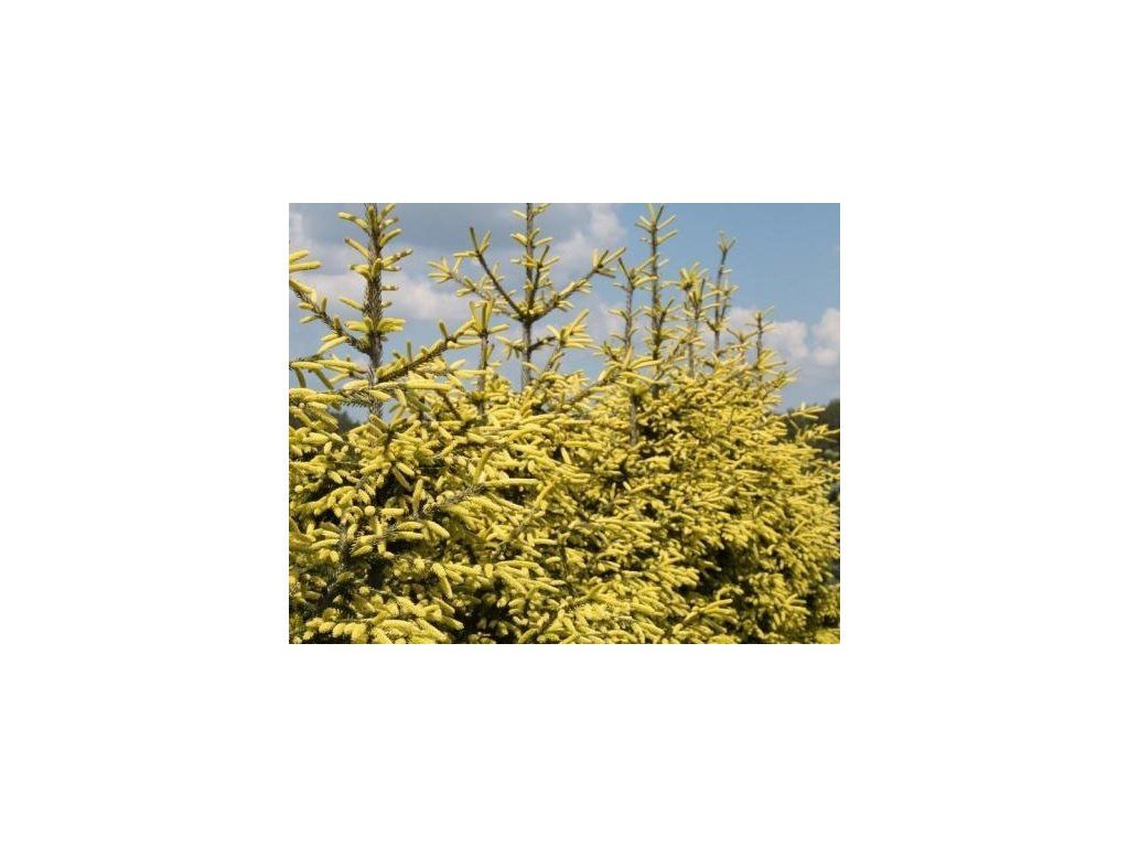 Fichte 'Withow Compact' - dieser Kultivar ist besonders im Frühjahr interessant, wenn die neuen Triebe buchstäblich in leuchtendem Gelb erstrahlen. Ein cremiger Hauch bleibt auch auf den späteren dunkelgrünen Nadeln erhalten. Der Kultivar bildet einen Baum mit einem weniger dichten, regelmäßigen, kegelförmigen Wuchs. Im Laufe von zehn Jahren erreicht er eine Höhe von 1,5 m, im Erwachsenenalter bis zu 4 m. Er kommt in größeren Gärten oder in Gemeinschaftspflanzungen wunderschön zur Geltung.